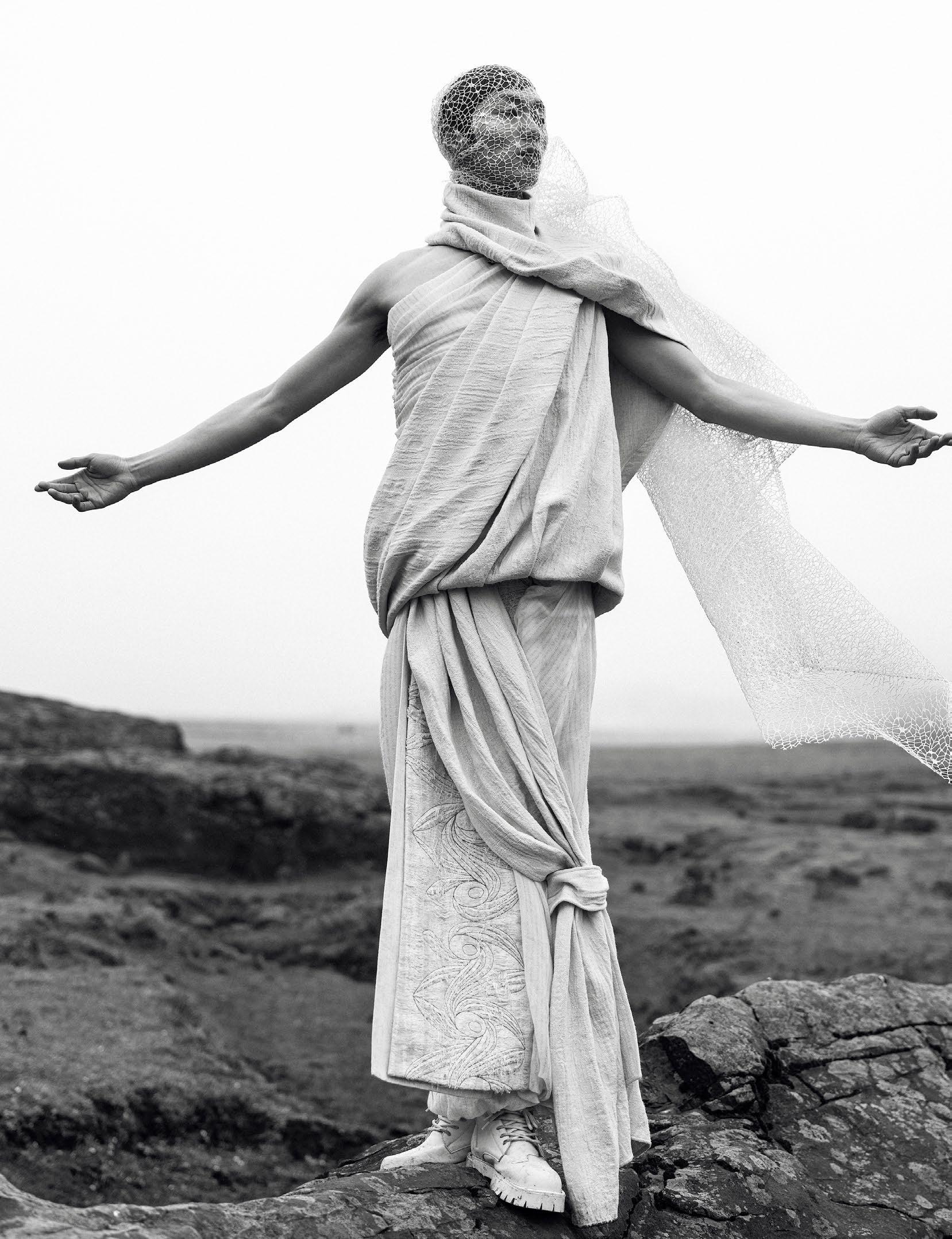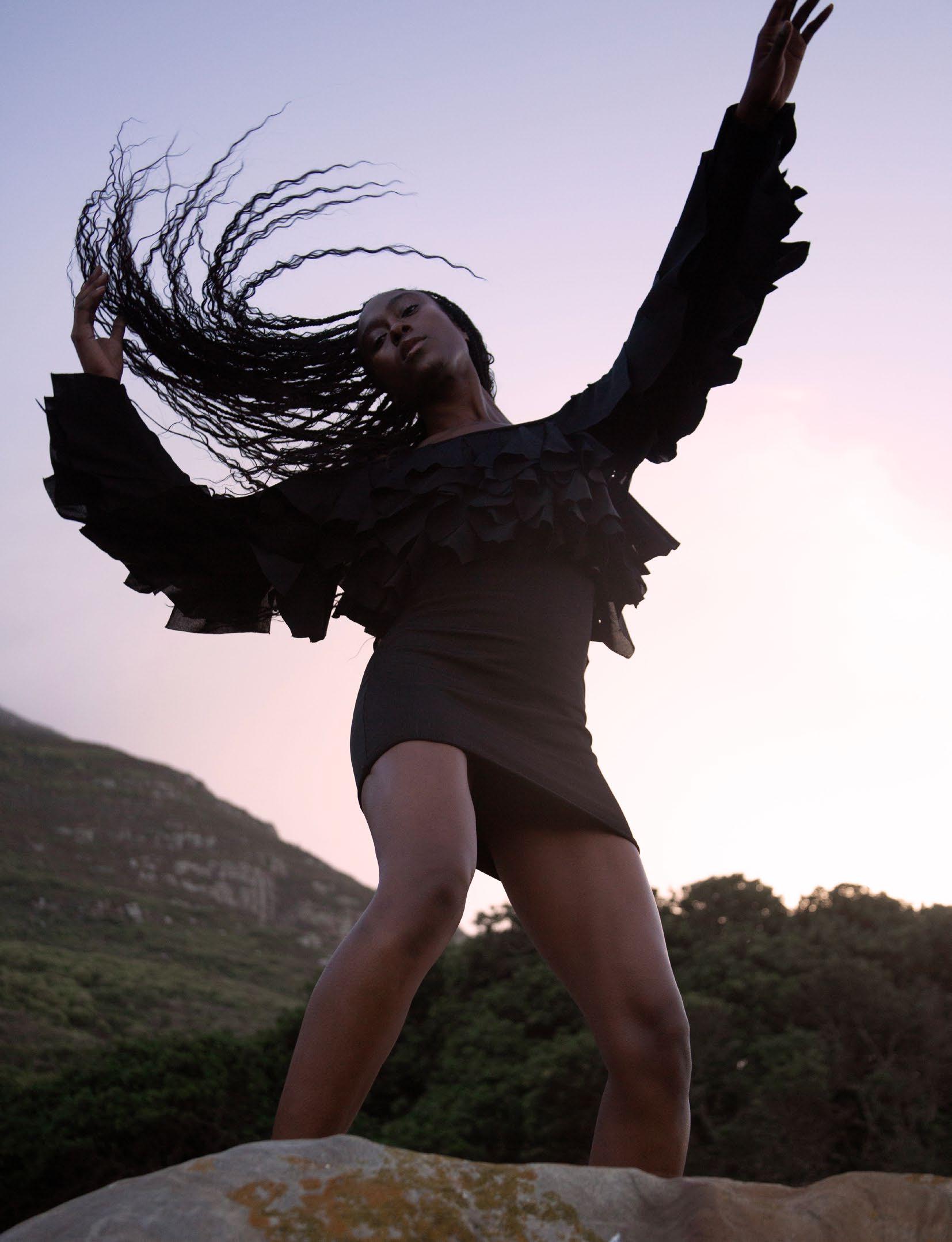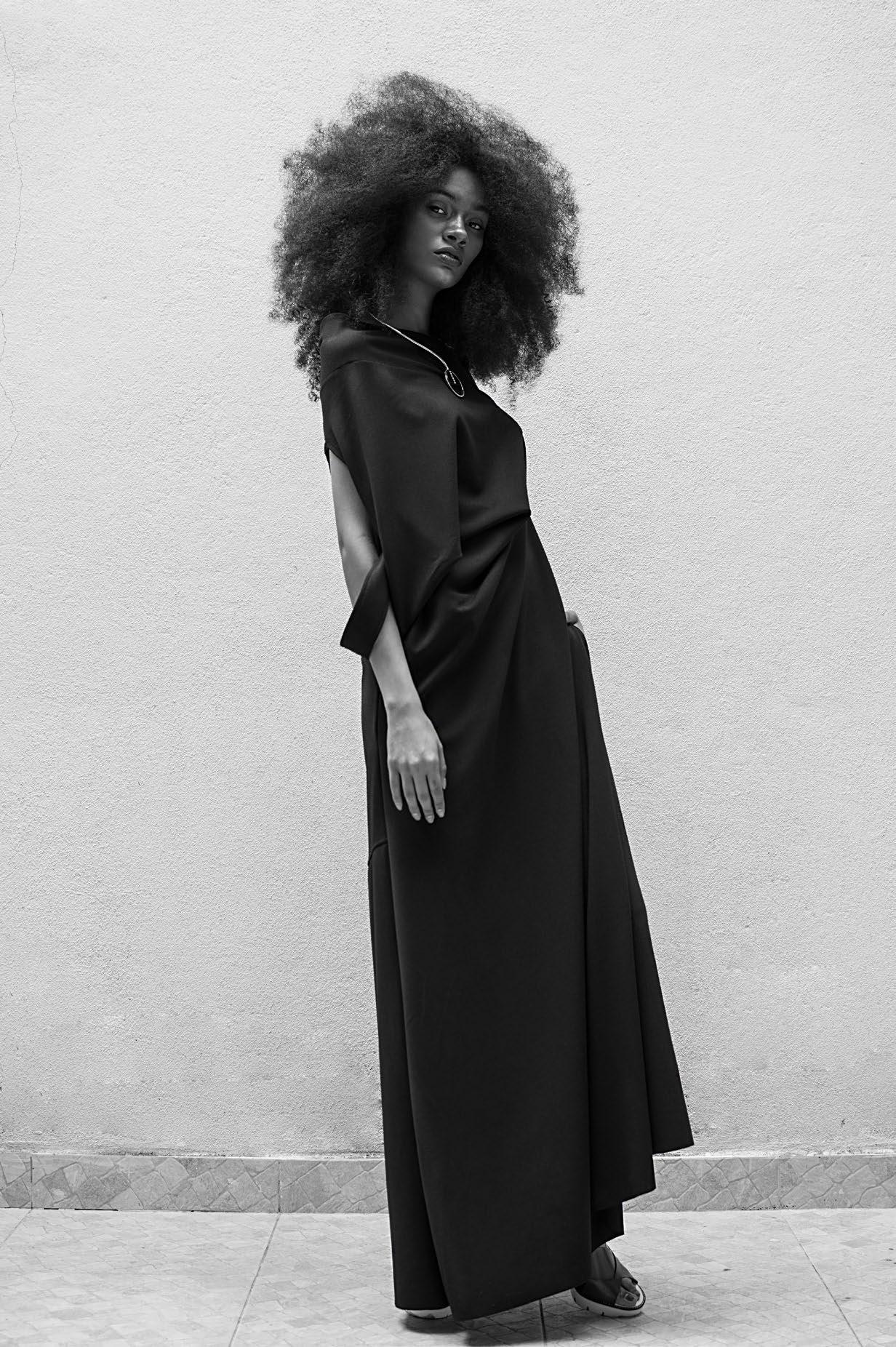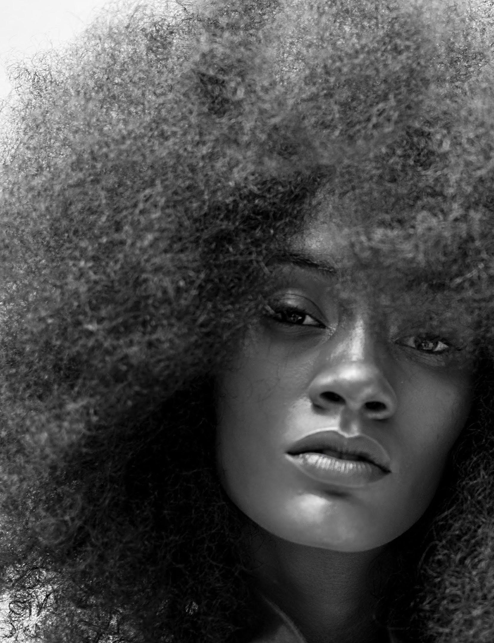 In this arresting black-and-white editorial, the power of contrast commands the spotlight. Model Sara Carreiro captivates with her sculptural Black Power hairstyle — a striking emblem of strength, grace, and identity.