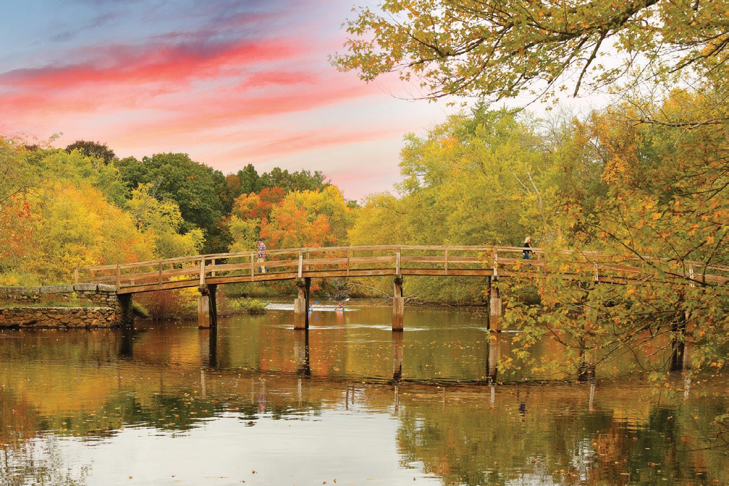 Concord is a quintessential New England town steeped with history and literature, museums, delightful shopping, and outdoor adventure. For over 10,000 years the indigenous people of the land knew this area as Musketaquid. The land between the grassy rivers. The town’s fascinating past makes it a popular tourist destination, with TripAdvisor ranking Concord one of the Best Places to Visit. Here you can retrace the steps of Revolutionary War soldiers and literary greats and learn about how “the shot heard round the world” led to America’s independence. Begin your visit at the Concord Visitor Center where a daily 1 p.m. history tour is the perfect introduction