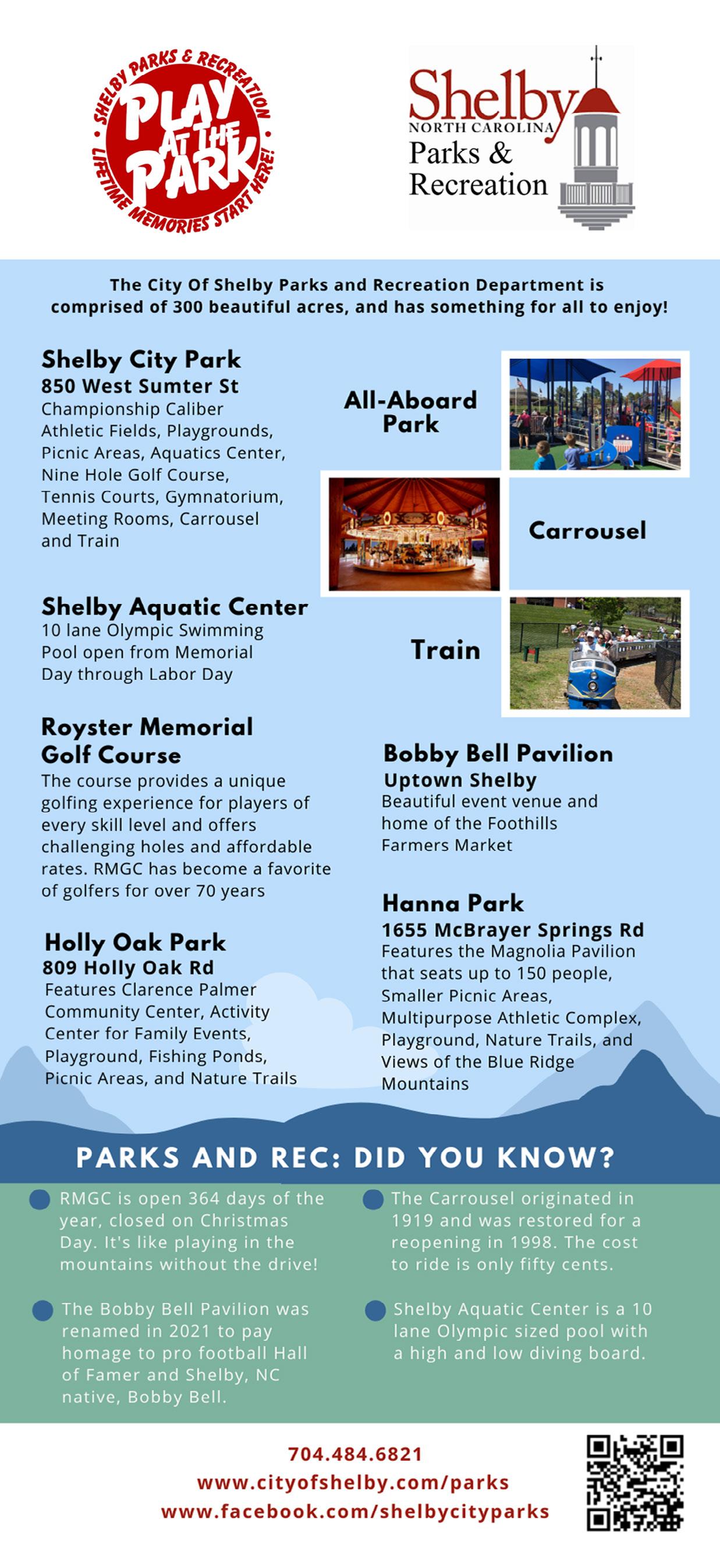 Shelby 704-484-6866 cityofshelby.com/departments/ parks-and-recreation/events-otherinformation