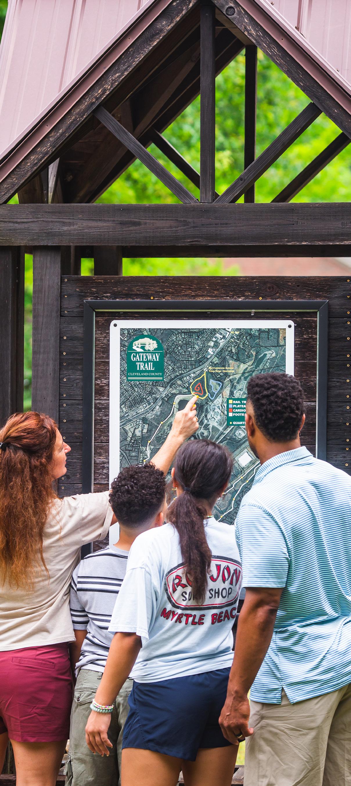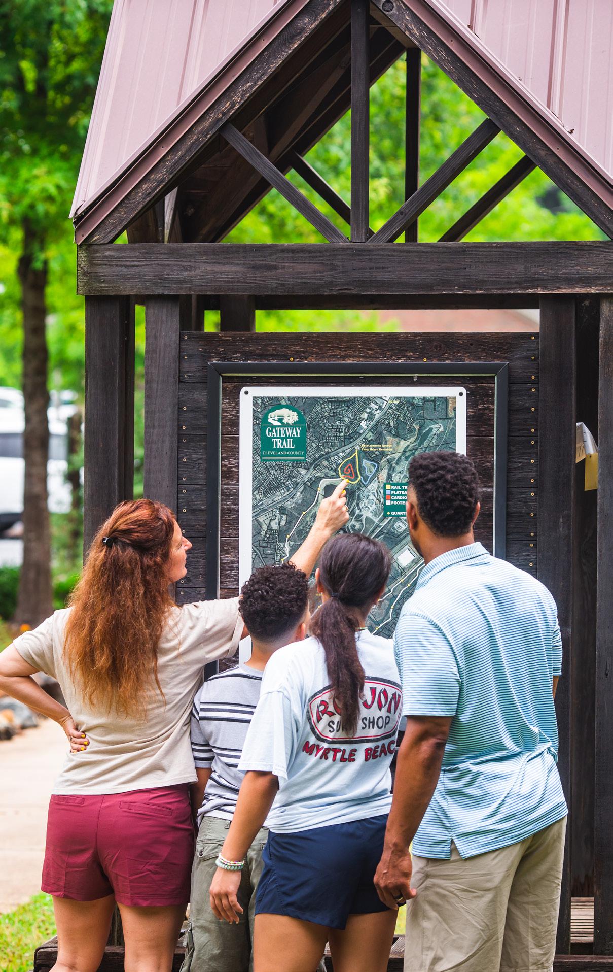 Hike the serene, forested Gateway Trail or venture into Crowder’s Mountain State Park