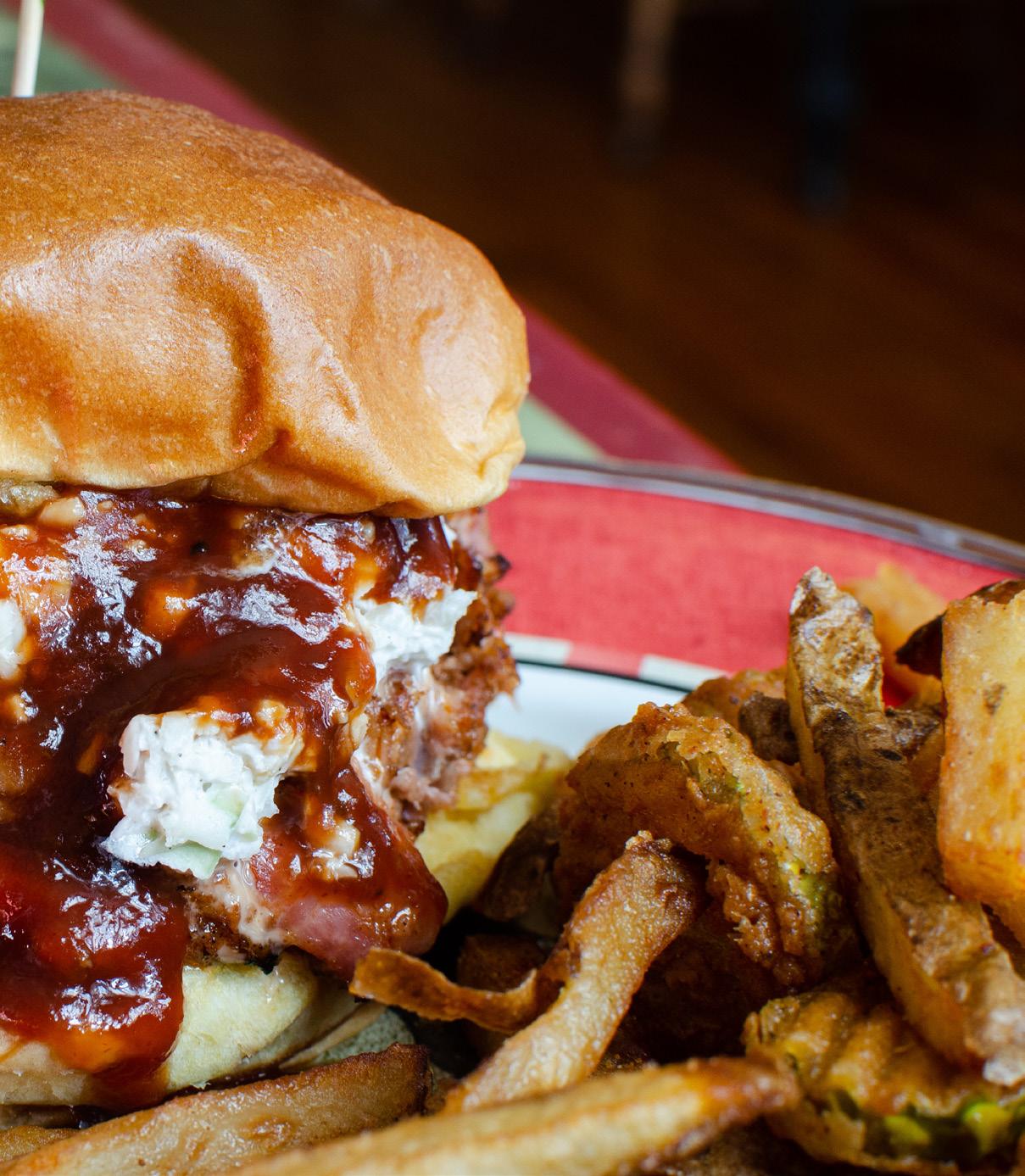 Johnny Ray’s is known for its elevated style – think BBQ and brisket sandwiches, but on brioche buns. If you came for BBQ, pick your favorite way to enjoy: JR’s BBQ fries, the sliced brisket plate, slow smoked BBQ ribs, or the El Chapo, a local farm burger topped with chopped brisket! They also serve smoked chicken wings, salads, and subs. Don’t miss their famous fried cheese curds (locally sourced)!