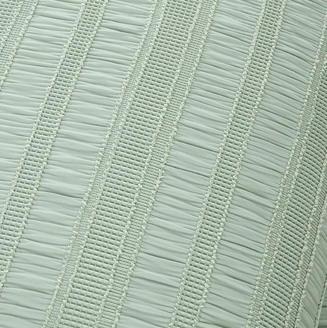 Earthy sage green is a natural new neutral candidate, bringing an even deeper calm and serenity to cozy neutrals. Layered with soft and cozy uber-textures in modern patterns like arches, diamonds, chevrons and dots elevate the sleep experience with luxurious tactile charm.