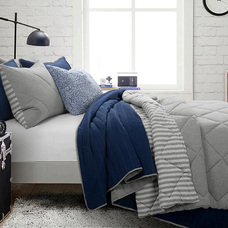 A Denim Pinched Pleat Jersey Fabric Comforter Set, Navy