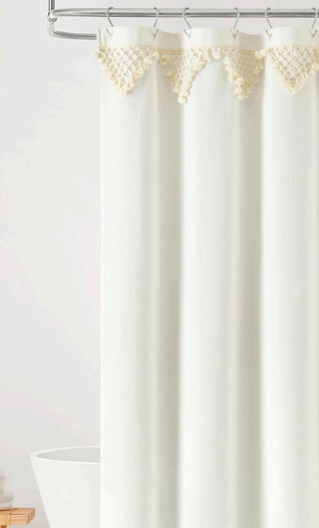 A Linen Watercolor Flower Shower Curtain Panel, Multi B Boho Macrame Tassels Light Linen, White-Neutral