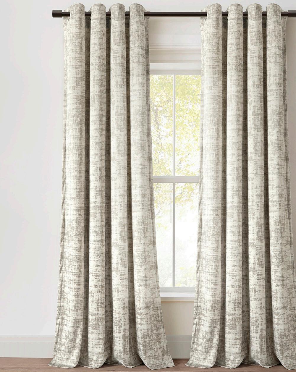 A Metallic Abstract Texture Window Panel, Neutral B Jacquard Diamond Deo Window Panel Set, White C Metallic Print Leaves Window Panel, Navy