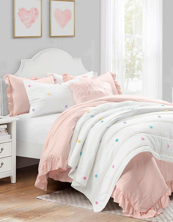 Pastel tufted dots and playful rainbow stripes lay on the softest of foundations for the sweetest of dreams