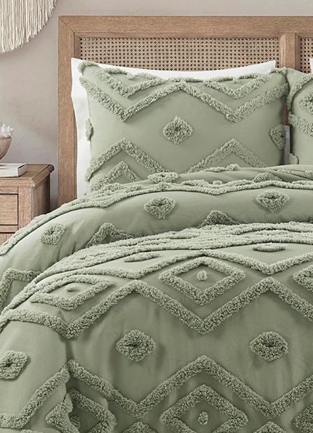 A Emily Tufted Geo Comforter Set, Sage B Textured