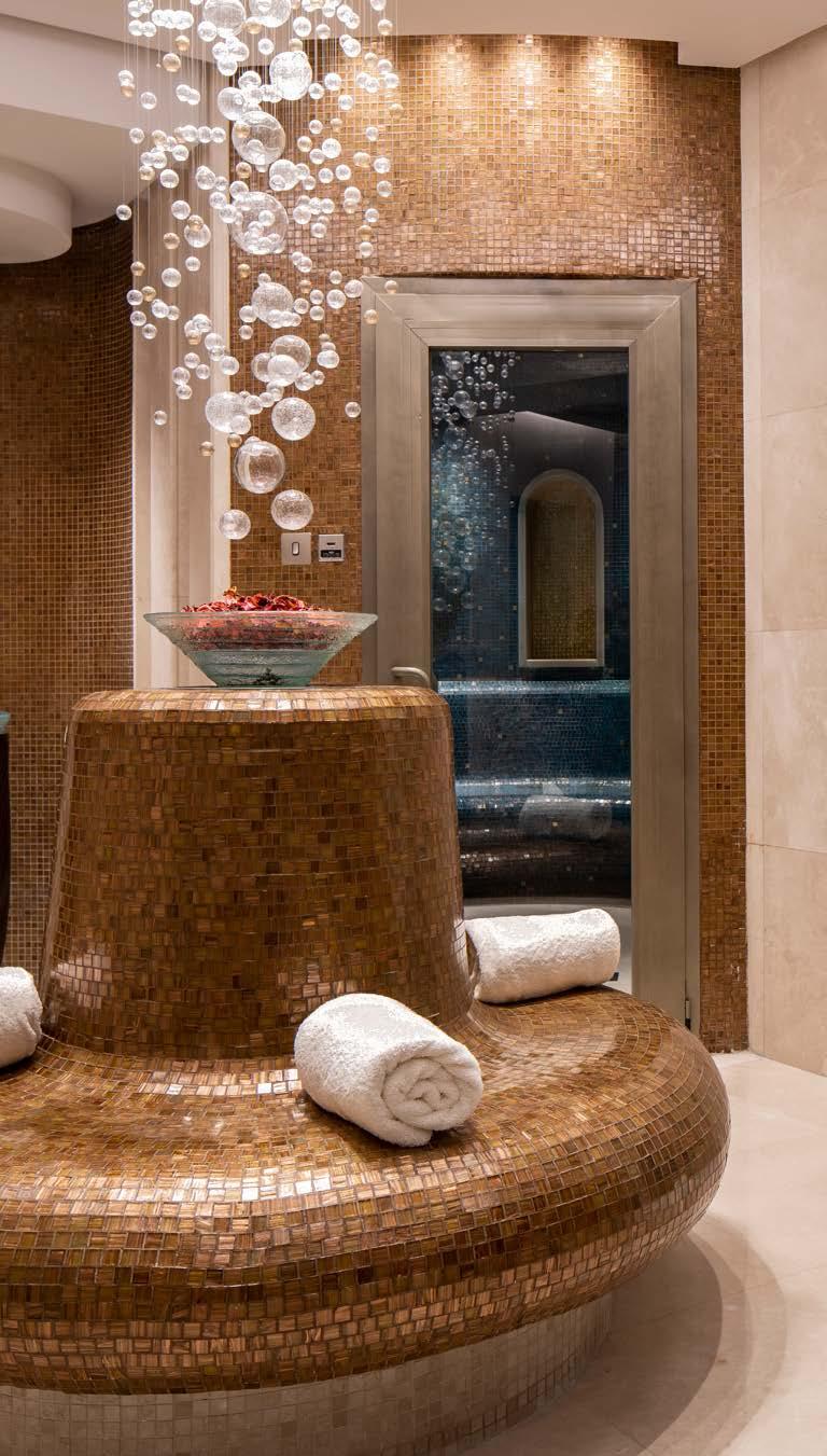 From the moment guests enter, the space evokes calm — with softly lit interiors, tranquil design elements, and an atmosphere of quiet refinement. The spa’s private treatment rooms, hydrotherapy facilities, steam rooms, and plunge pools create a setting where the art of relaxation becomes a sensory experience.