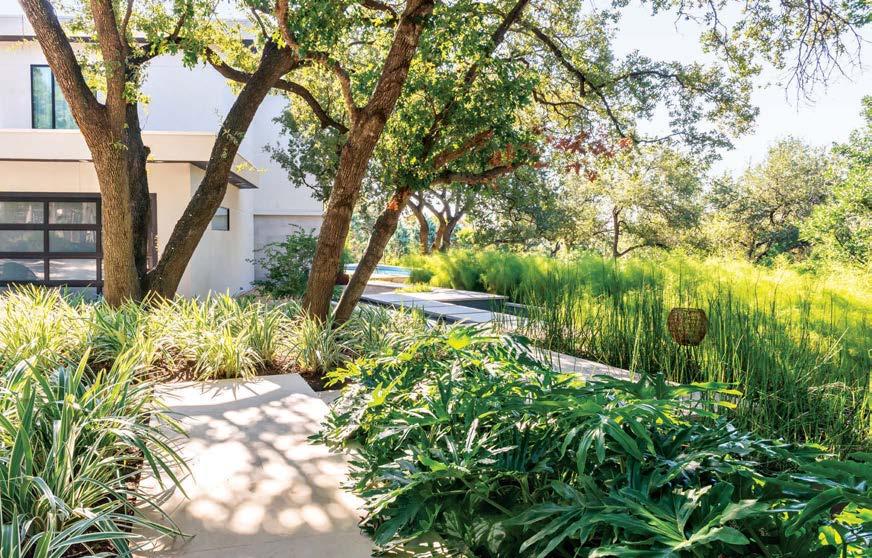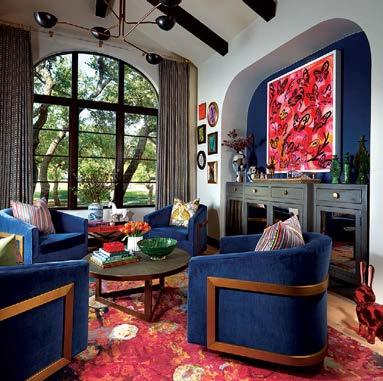 ON THE COVER: Entertaining played a huge factor in an Austin home refreshed by Chupik Design, especially when it came to this seating area, which looks out to the interior courtyard. Dressed in a beige perfectly matched to the conversation-starting Malcolm Hill art piece, soft nubuck leather armchairs encircle a Noguchi coffee table from Scott + Cooner. Page 210