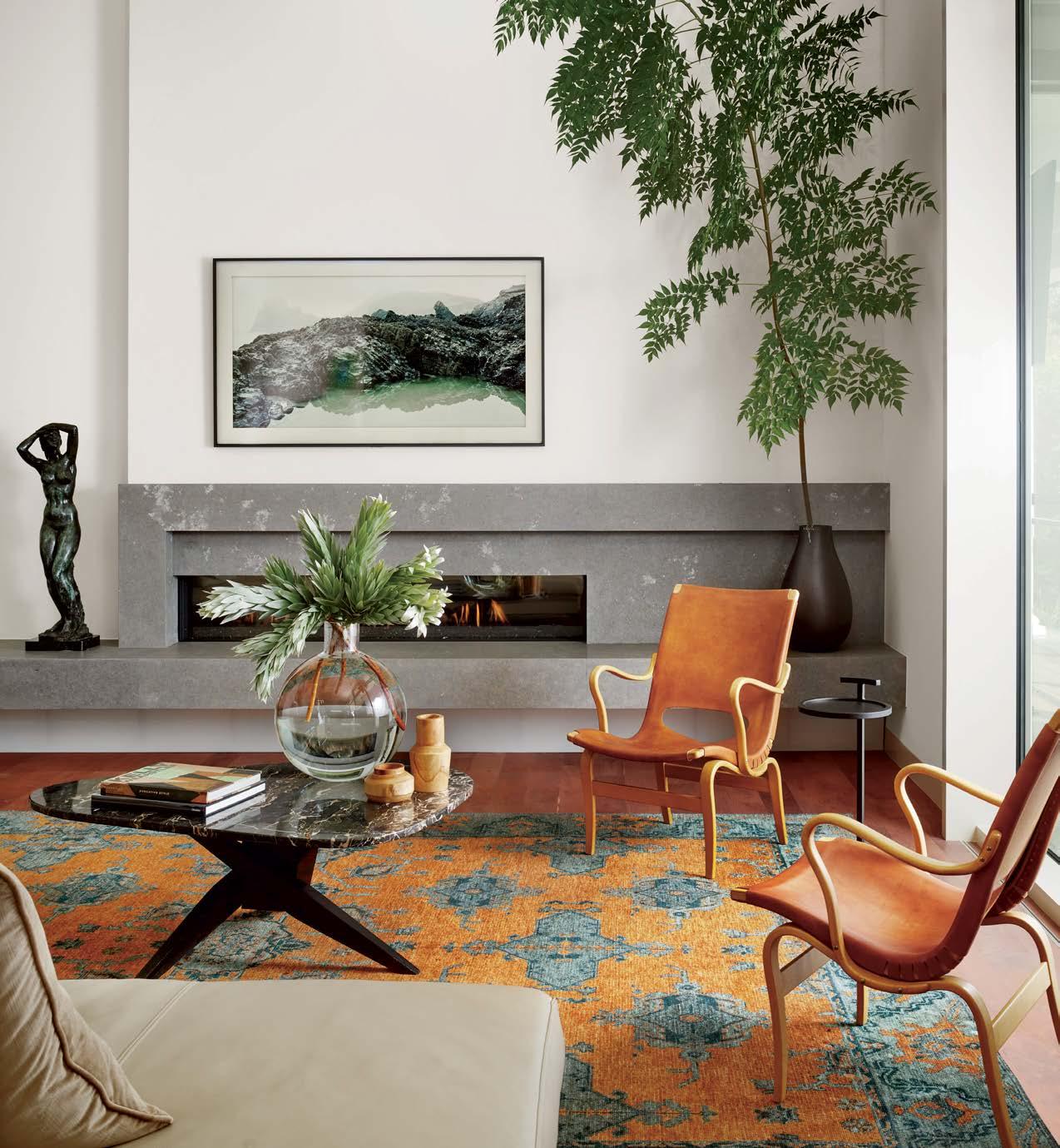 In fact, the entire abode is about creating multiple moments of visual surprise and delight. The verdant foliage outdoors, the striking artwork indoors and the design choices throughout foster an inspirational and welcoming environment that invites family and guests alike to enjoy.