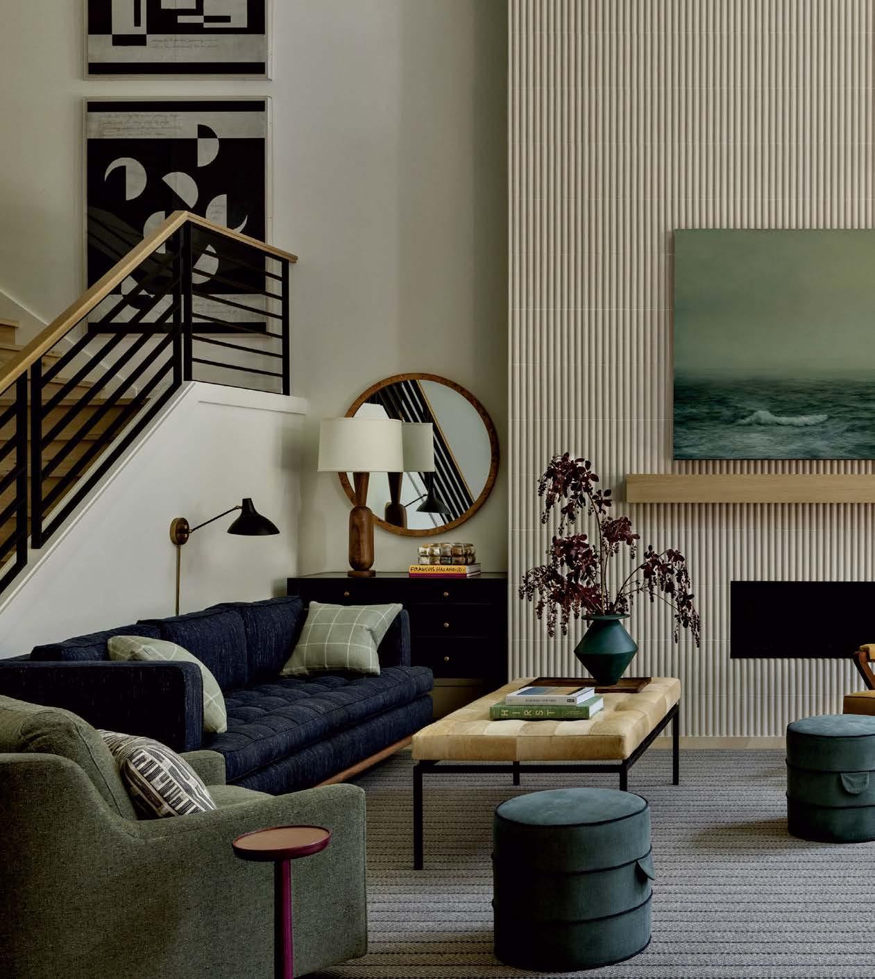 oppressive, deep-red textural wallcovering in the family room rather than remove it. Benjamin Moore’s Stratton Blue HC-142 melted away the Victorian vibes while leaving our clients with an interesting story to share.” Anecdotes like this aren’t uncommon with these three, who share a love of bold paint projects. Ramsay and Nicholas chime in, “Every time our clients trust us to use color, we’re able to dramatically impact the mood of the space, not to mention create a more custom aesthetic. Whites and soft neutrals have their place, but we consider it a missed opportunity to design an entire home that lacks confident use of color.”