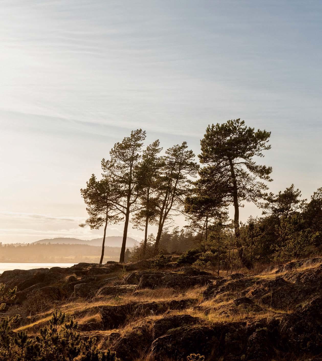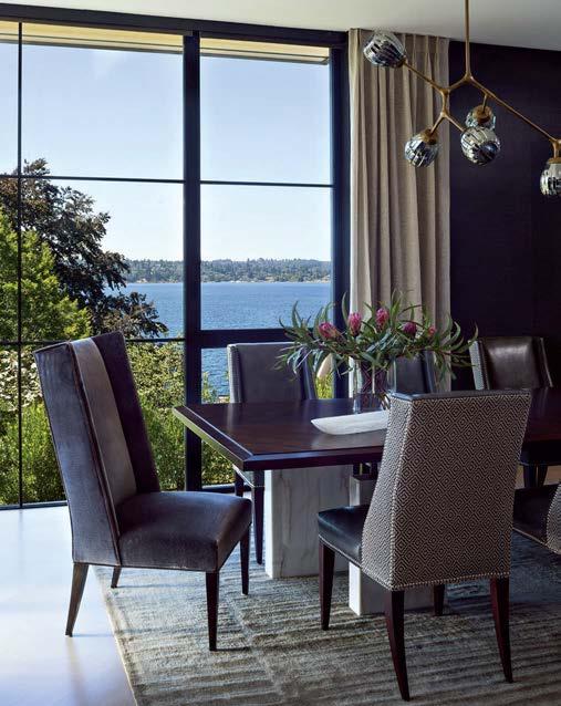 The beauty of Washington’s San Juan Island is wild and muscular, with lush old-growth forests populated by tall Douglas firs; wide grassy vistas overlooking the Salish Sea; and rugged hillsides that roll down into rocky beaches strewn with substantial driftwood logs. Perched on a promontory, this abode has a front-row seat to those water views and other, nottoo-distant islands. “We knew immediately that this was a special house,” says interior designer Andy Beers, who collaborated on the dwelling’s remodel with architects Dan Wickline, Philip Burkhardt and Christine Dennett. “The site is wrapped by the sea, and it’s not uncommon to see pods of orcas swimming by. It’s majestic and otherworldly.”