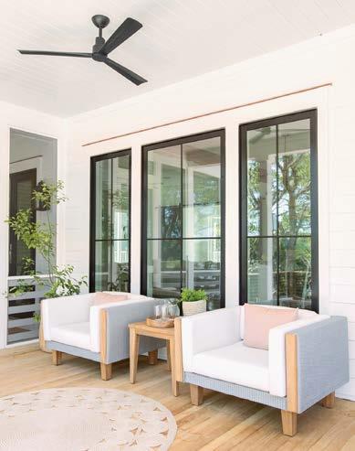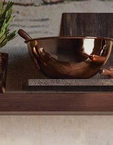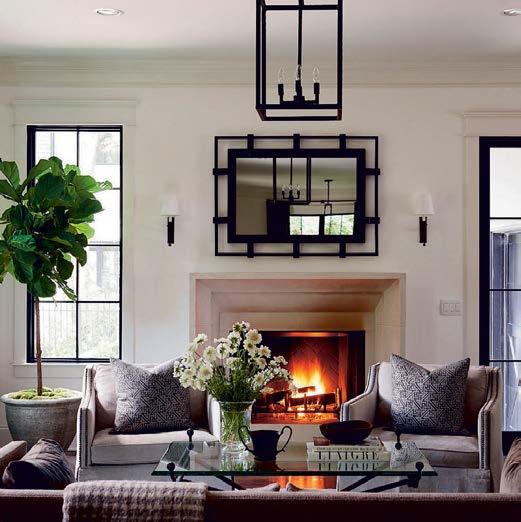 Other details, such as the floating steel-andglass cabinets between the kitchen and bar area, were partly inspired by the couple’s travels. “Mark liked a similar feature at a hotel where they stayed in the Caribbean,” Wilson says. “This element allows visual separation between spaces, yet you still get that great view of the lake.”