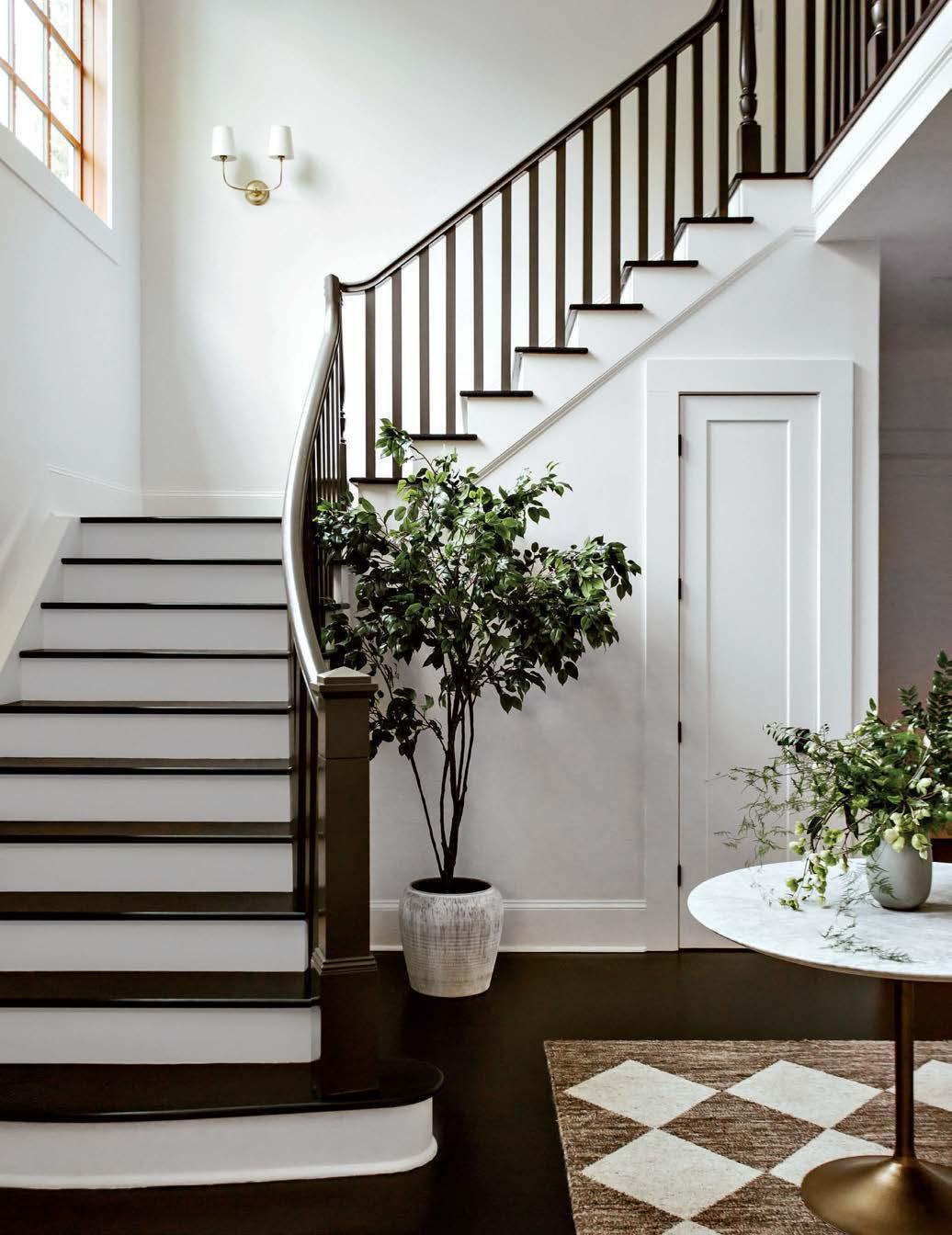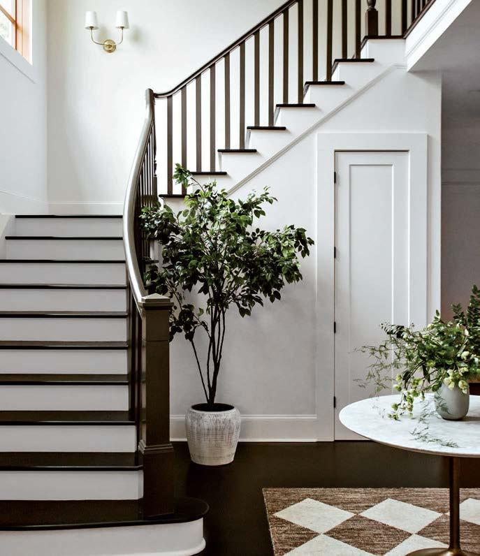 dining room wall for maximum impact. “For the stairs, we tried to pick up on the spirit and the details of what you might expect to find in a house of that time period,” Dixon says.
