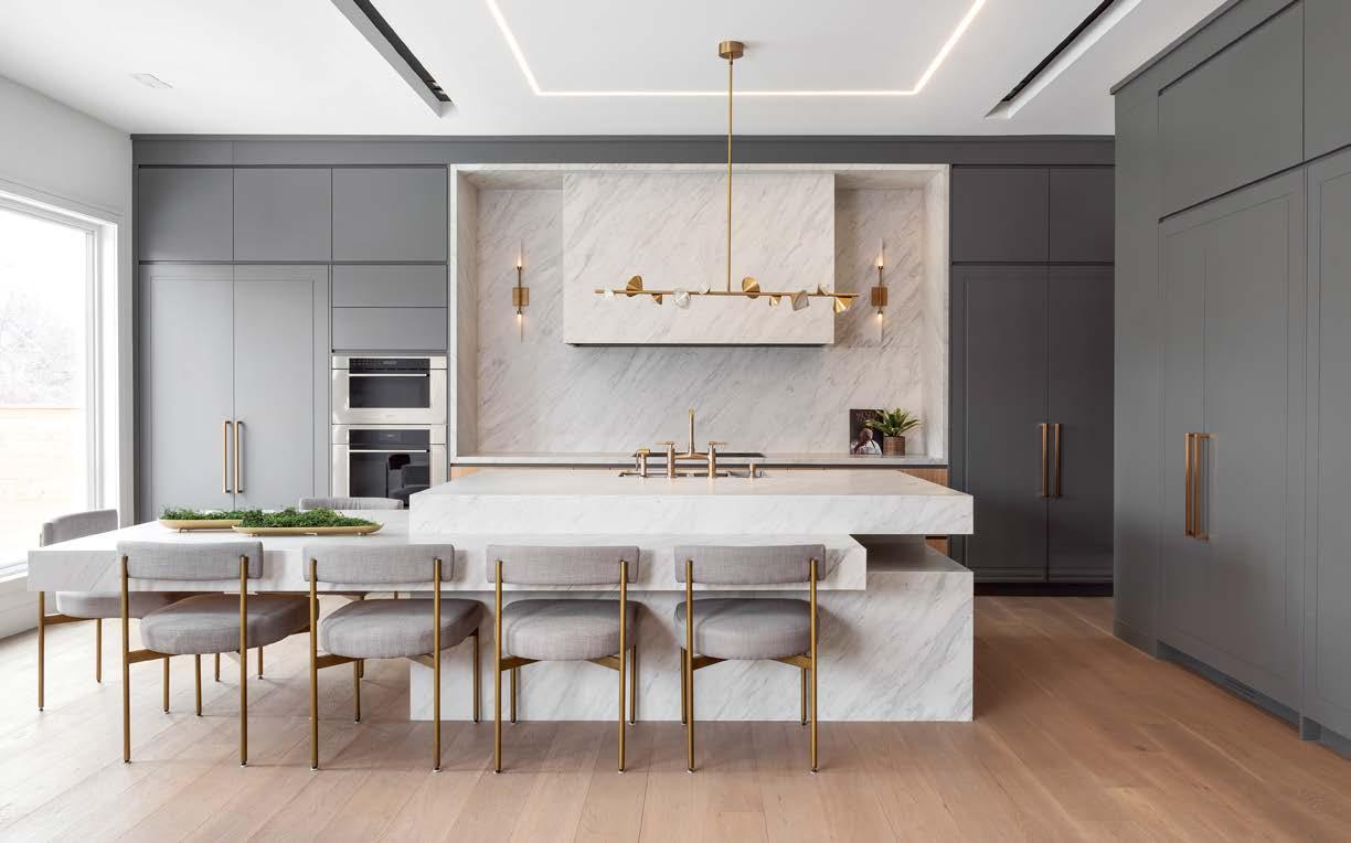 Embracing transitional finishes and furnishings helped balance the home’s traditional exterior with its forward-thinking interior envelope.