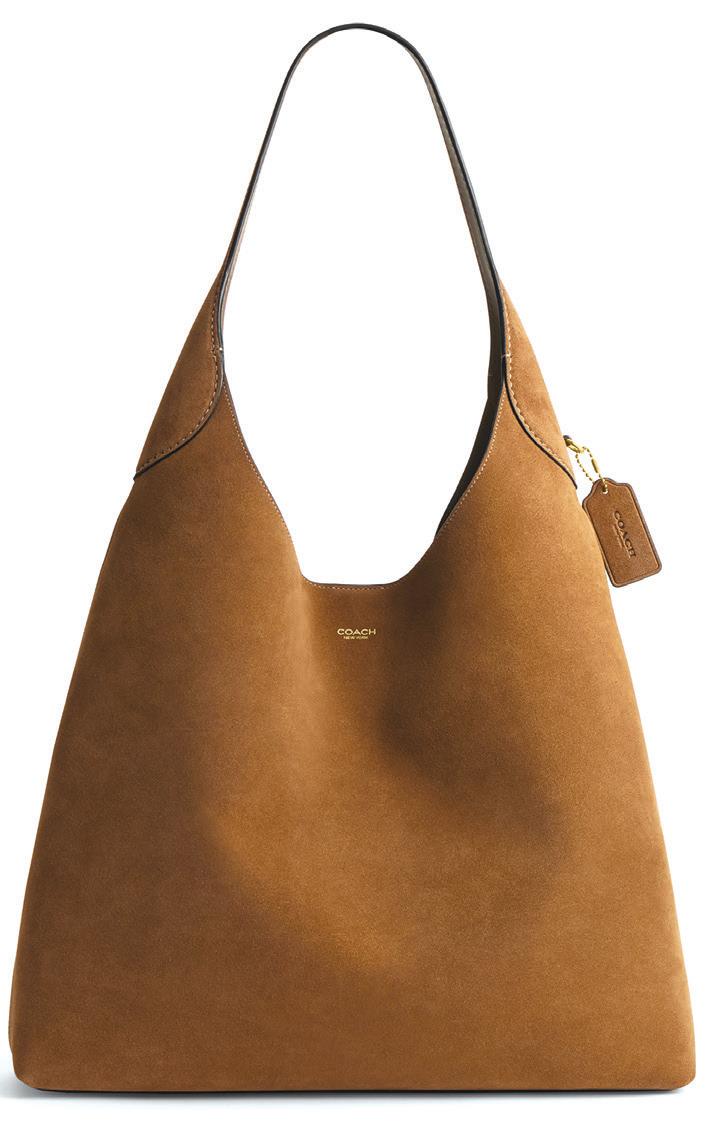 An elegant, minimalist silhouette crafted of durable, luxuriously soft double-faced suede. Brooklyn Shoulder Bag 39 by Coach ($610); ca.coach.com