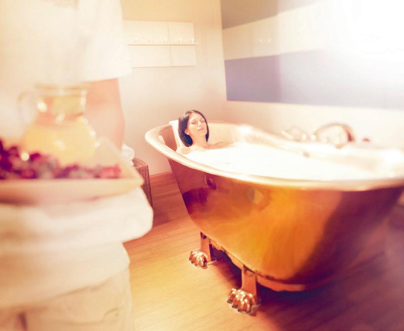 Dans les cabines avec baignoire de cuivre, musique, senteurs et lumières sont toujours de la partie et vous pourrez vous détendre seul ou en couple dans - un bain de pétales de roses, ou de lait de chèvre en savourant une coupe de crémant… Plus loin, pour profiter totalement des envelop pements, favoriser une détente maximale et une meilleure absorption des produits vous serez allongés sur des matelas d’eau chauffée à 37°… Sans oublier le bain de vapeur ou le soin relaxant au foin des Alpes Kraxenofen idéal pour décontracter la musculature dorsale…Enfin, si vous souhaitez emporter un peu de cette atmosphère de délassement chez vous les produits (huiles, bains moussants…) spécialement concoctés pour vous sont également disponibles à la vente.