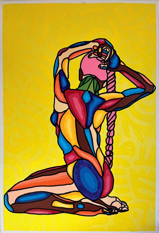 Avec un univers onirique, mêlant humour et positivisme, Lynn Cosyn dépeint des instants de vie. Elle puise son inspiration dans les gens qui marchent dans les rues et qu’elle photogra phie dans son esprit, pour ensuite les mettre sur papier tout en s’amusant avec les proportions. Toujours très doux, ses des sins vivent à travers l’utilisation de couleurs scandinaves. « Je débute toujours mes esquisses avec des couleurs, c’est ce qui m’inspire pour la suite ».