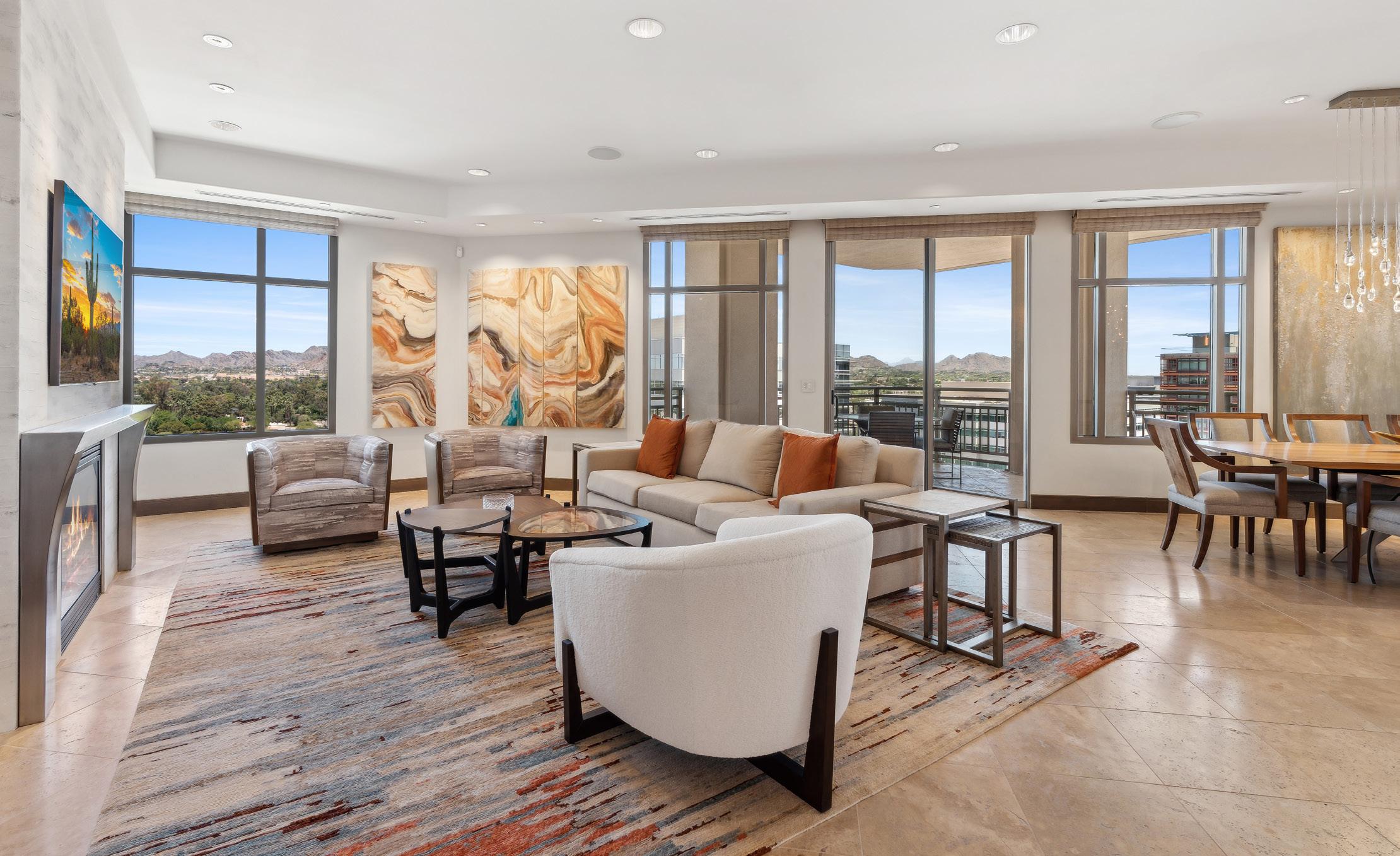 Located near Old Town Scottsdale in the Optima Camelview, this urban residence is the essence of modern city living. Thoughtfully designed, this haven offers comfort and style bathed in natural light with floor-to-ceiling windows and