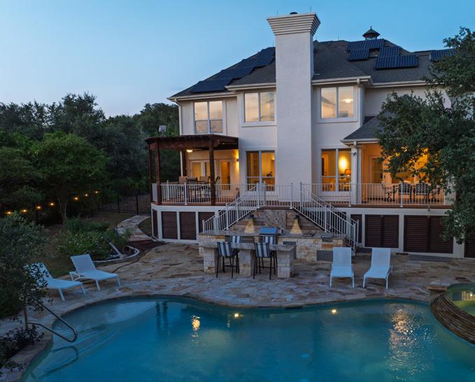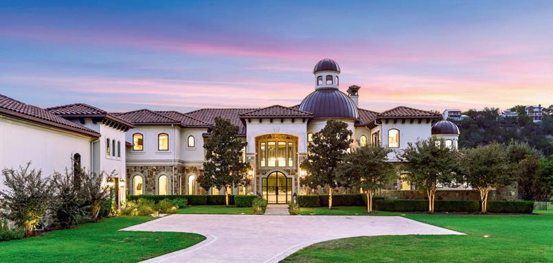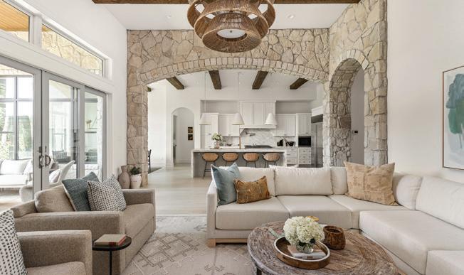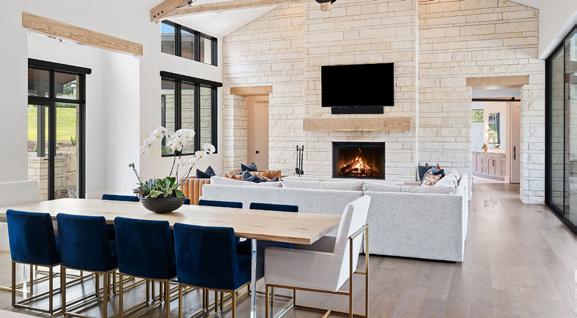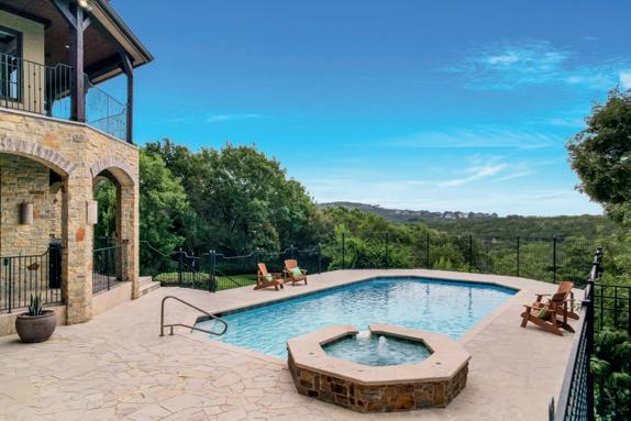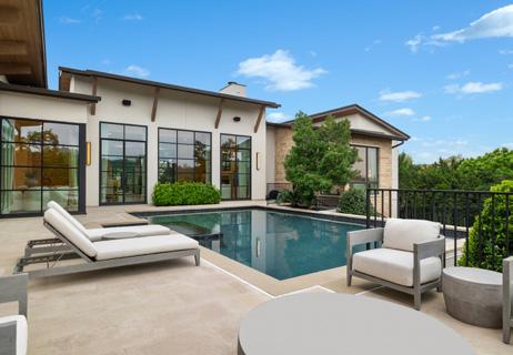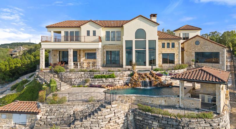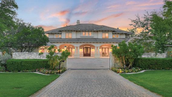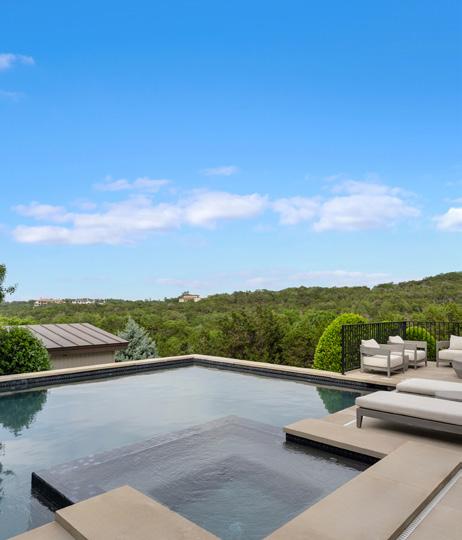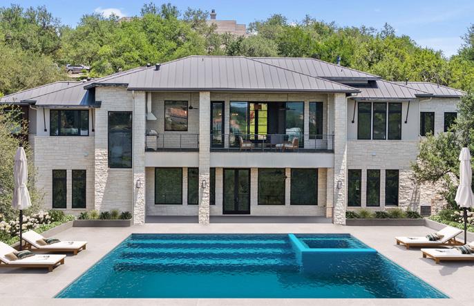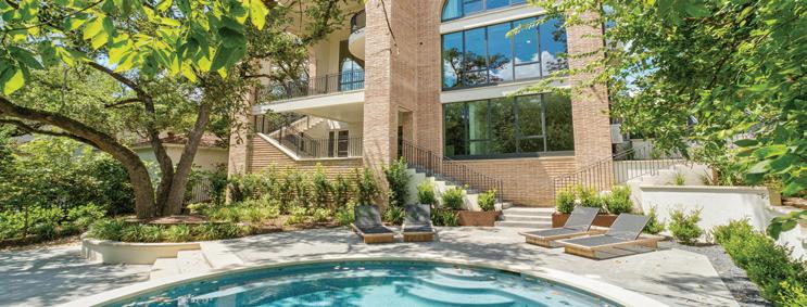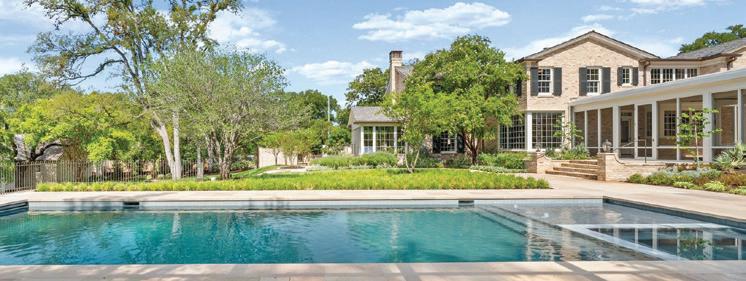 Our cover home on page 64, presented by C indy Greenwood of Greenwood Residential, sits at the end of a quiet cul-de-sac in Tarrytown and blends timeless craftsmanship with modern design. Built by Dalgleish Construction and designed by Ted Young with interiors by Elizabeth Stanley, this 4,941-square-foot residence features hand-applied plaster walls, reclaimed barnwood floors, and custom finishes throughout. Standout details include a 19-foot sculptural steel vent hood, brass-plated bar, and Moroccan-inspired outdoor terrace with fireplace, soapstone grill, and views of the pool and spa. A rare opportunity to own a new-build in one of Austin’s most iconic neighborhoods.
