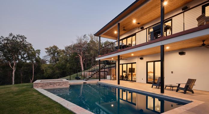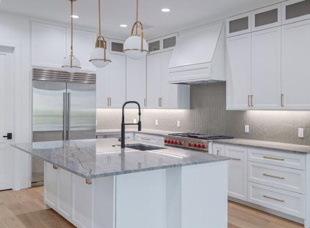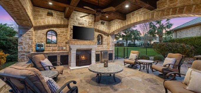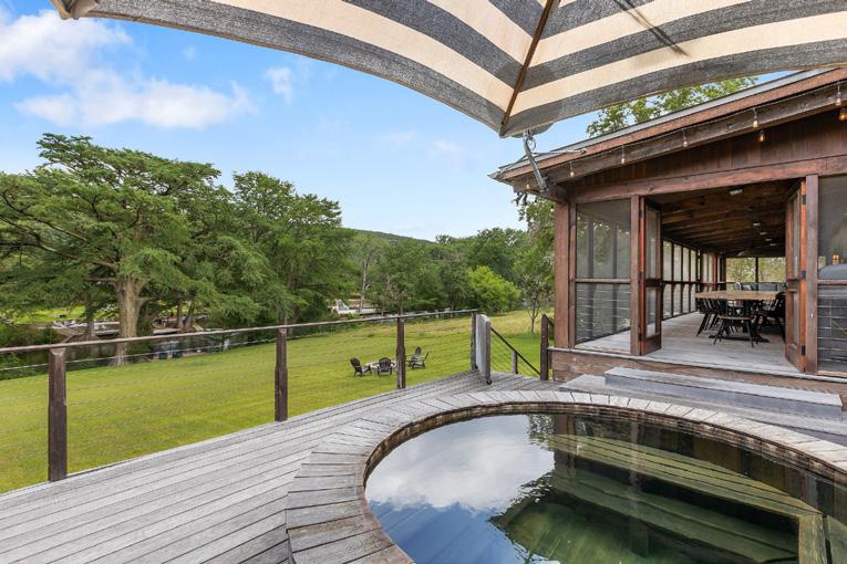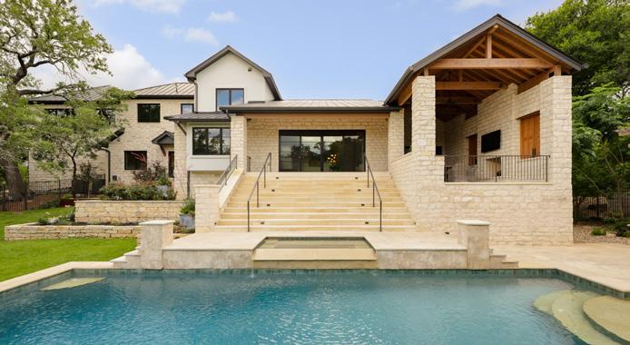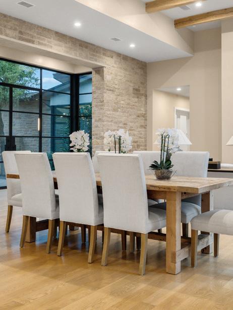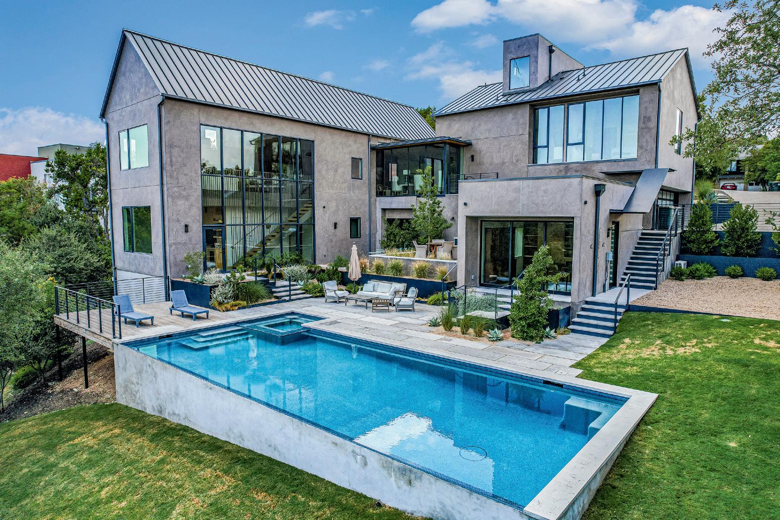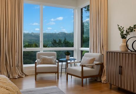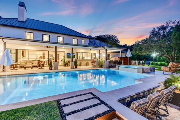 Our cover home on page 64, presented by C indy Greenwood of Greenwood Residential, sits at the end of a quiet cul-de-sac in Tarrytown and blends timeless craftsmanship with modern design. Built by Dalgleish Construction and designed by Ted Young with interiors by Elizabeth Stanley, this 4,941-square-foot residence features hand-applied plaster walls, reclaimed barnwood floors, and custom finishes throughout. Standout details include a 19-foot sculptural steel vent hood, brass-plated bar, and Moroccan-inspired outdoor terrace with fireplace, soapstone grill, and views of the pool and spa. A rare opportunity to own a new-build in one of Austin’s most iconic neighborhoods.