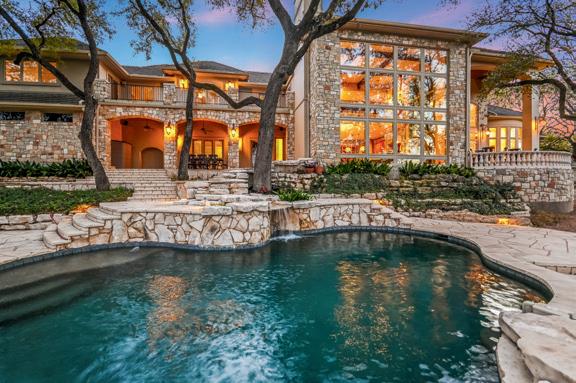 Experience unmatched luxury at 12600 Lyndon Dr. This 6,706 sq. ft. European villa–inspired estate is perfectly perched on 1.31 acres to capture dramatic Lake Travis views from every room. Floor-to-ceiling windows, grand rotunda entry, vaulted beamed ceilings, and custom stonework create timeless elegance. Expansive terraces, a resort-style pool with grotto and swim-up bar, and a cabana make this a private lakeview sanctuary built for extraordinary living.