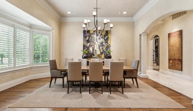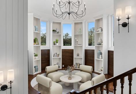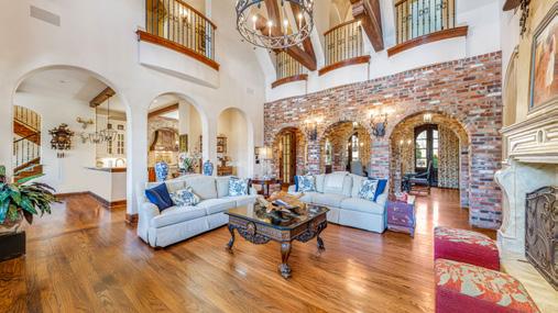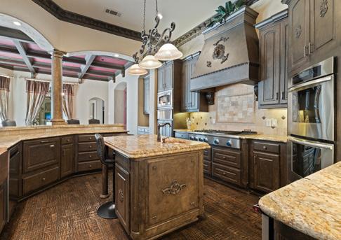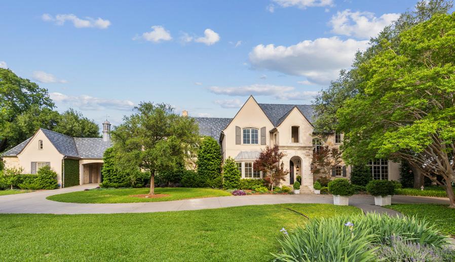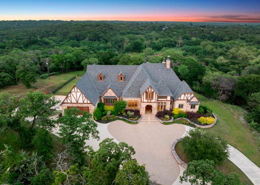 Just 15 minutes from downtown Weatherford, this six-bedroom, sevenbathroom mansion offers an elegant yet functional layout. A striking turret anchors the home, featuring a cozy reading nook with floor-to-ceiling bookshelves and panoramic windows. The estate also features an orchard, a raised-bed garden with drip irrigation, and a scenic creek bordering the property. Agricultural tax exemption adds value to this remarkable home.