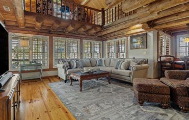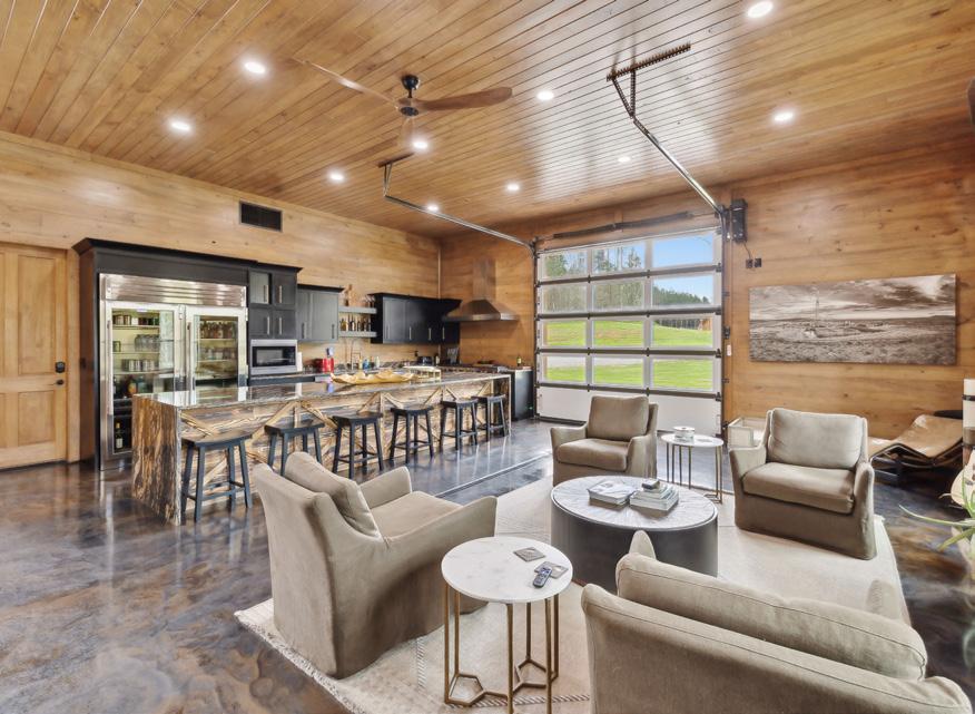 At the core of the estate is a refined compound of structures built for comfort, entertainment, and privacy. The main lodge features four wellappointed bedrooms and a spacious bunk room, blending rustic warmth with modern sophistication. Just steps away, a climate-controlled garage complex offers five additional bedrooms and baths, including a hidden owner’s suite with a private office and staff kitchen. For more remote living, a two-bedroom off-grid cabin overlooks a private waterfall, offering the perfect sanctuary for those craving silence and solitude.