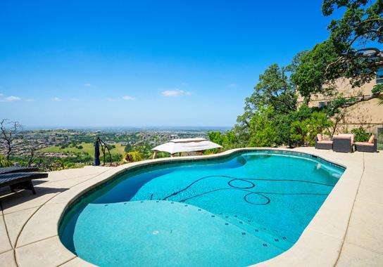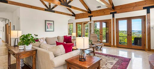 881 Villa Sol, El Dorado Hills • price upon request | Off road privacy on 1 acre surrounded by lush landscaping, courtyard waterfall, seasonal color and captivating lake views. Charming living room with fireplace opens to balcony with pergola. Chef’s kitchen with walk-in and butler pantries flows to formal dining. Great room with cathedral open beam ceilings and fireplace opens to balcony over the resort rear yard with pool and spa. Main level secondary bedrooms, bath & guest suite with access to rear yard. Upper level primary suite enjoys a private balcony to take in stunning lake views.