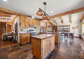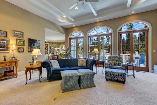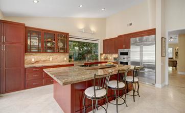 • Open kitchen/family room with coffered ceilings and GE Monogram appliances