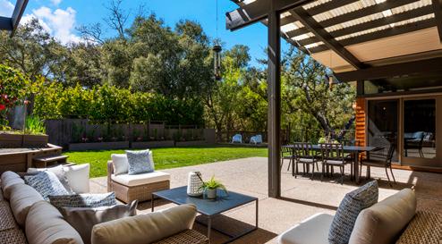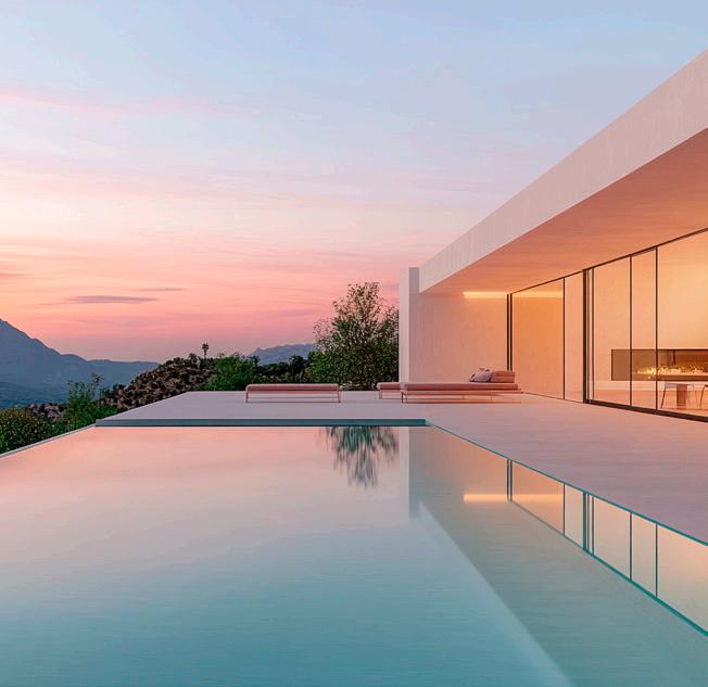 Luxury living no longer stops at the back door. We’re talking resortgrade outdoor spaces: outdoor kitchens, fire tables, putting greens, bocce courts, pickleball and saltwater pools. The kind of spaces where a glass of Pinot, an outdoor speaker system, and sunset views do all the work.