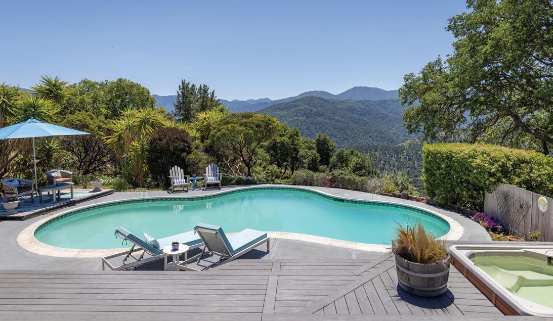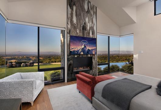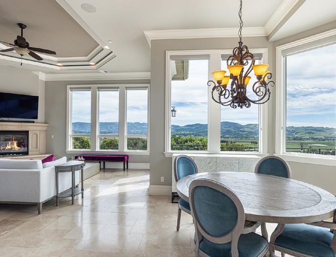 Dreaming of breathtaking Napa Valley views upon waking every morning? Live that unique life with this striking, three-sided floor-toceiling window wall in one of the two primary bedroom suites of this stunning modern home. Approx. 2000 SF of outdoor living includes an inviting, sparkling swimming pool suspended over the valley, outdoor gas fire place, and two porcelain tile covered cantilevered decks with sweeping wine country vistas spanning Yountville to St. Helena to Calistoga and Howell Mountain above the fog line.