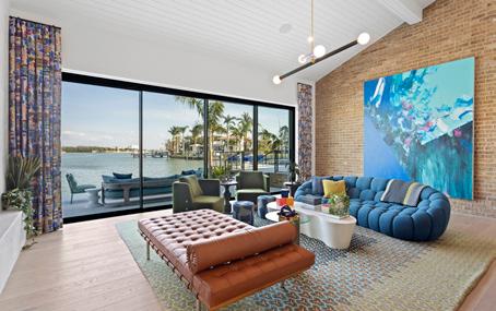 Inside, every detail impresses—from the private home theater and soaring ceilings to the designer kitchen and sleek glass-panel elevator. All-new hurricane-rated windows and doors provide safety without compromising elegance.