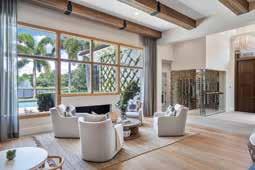 Palm Beach Polo • Blue Cypress - This new construction luxury home features over 3,700 sq. ft. of living space with four bedrooms, four full and one-half bathrooms, two-car garage and a spacious outdoor living area with a pool and spa. Professionally designed and fully outfitted by Soco Interiors, this gorgeous home is offered fully furnished. The elegant, contemporary design balances modern minimalism with subtle farmhouse muse, creating peaceful, bespoke spaces. The main floor hosts the exquisite owner's suite, a private study and a great room with vaulted, open beam ceilings, wet bar and fireplace. Offered at $4,395,000