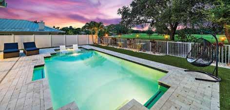 Palm Beach Polo • Kensington - This elegant estate is situated on over half an acre and boasts 8,033 sq ft of living space with 6 bedrooms, 7 full and 2 half bathrooms, a 3-car garage, charming courtyard entry, a resort-style outdoor living area, pool and spa. The custom floor plan is ideally configured for family and guests, featuring a poolside detached cabana suite, guest living quarters above the garage with private entry, and a second floor oversized guest suite with a sitting room.