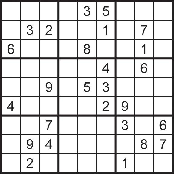 Fill the grid so that everyrow and every 3x3 square contains the digits 1to9 Solution next Wednesday.