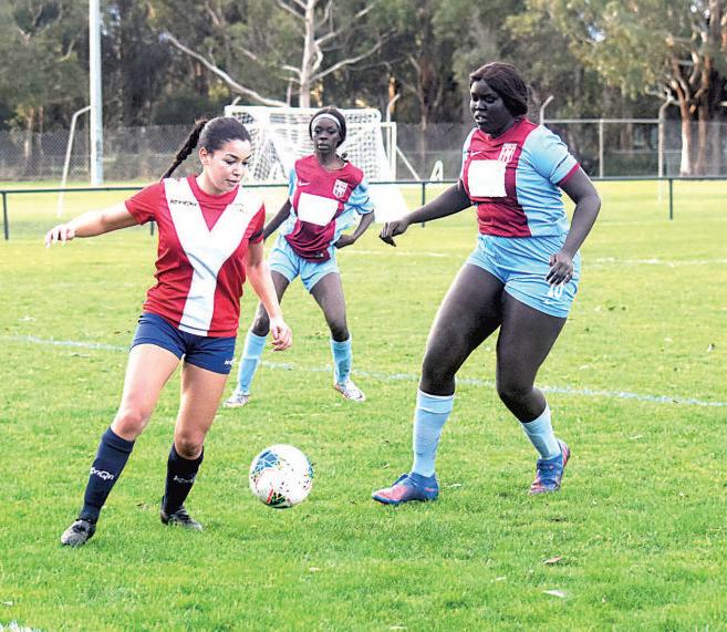 Newborough/YallournUnitedwomen’splayer AmiraIdmouh showsexactlyhow to executea pullbackina recent matchagainst Pegasus. The Combineare third on the Latrobe Valley Soccer League ladder with five rounds to play