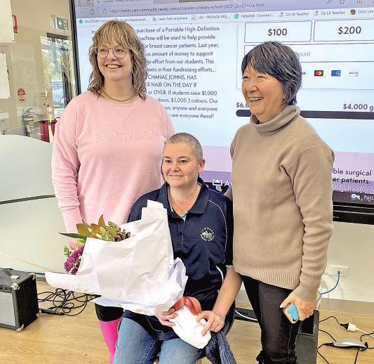 Latrobe RegionalHealthEngagementOfficer Lisa Twigger,Cowwarr PrimarySchool acting principal ChanaeJohns(with anew look), and LRH chair Linda McCoy.