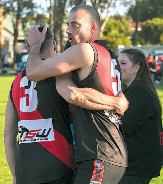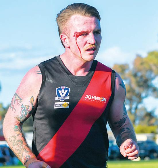 Late in the fourth quarter,Glenane brokefreeof agroup on the HenryStwing,intuitively dribbling the ball forward. The Bombers kept pushing. An all-or-nothing-type player, Cal Egan put his body on the line, sliding into amarkonthe 50 metre line. But aconversion went begging. Boisdale-Briagolong needed something or someone to lift. Anotable figure in the forward line, identifiable for the helmet he always wears was that person.