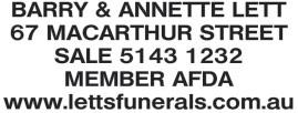The mother of two moved to South Australia in 1969, where she spent most of her life before relocating to Sale with her daughter Rona.