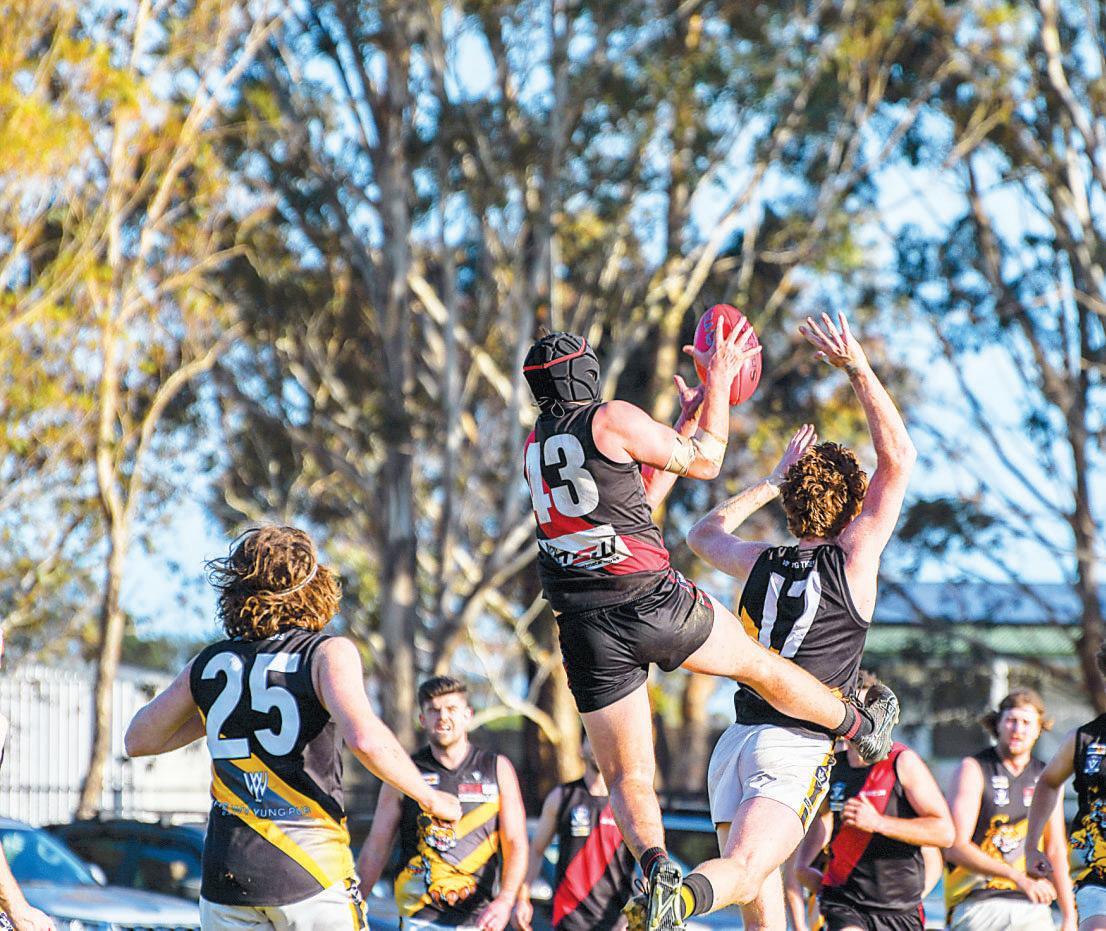 Smalls likeKel Porter, who bulldozed through tacklers,and Jackson Glenane, who rocketed out of ground contests, were significant ball movers. In theair,Boisdale-Briagolong’s tall figures, like MatthewWilkinson, were in form from the get-go. Great timing and sticky hands saw Wilkinson take abunch of importantmarks or spoil the Tigers’ momentum into their forward half.