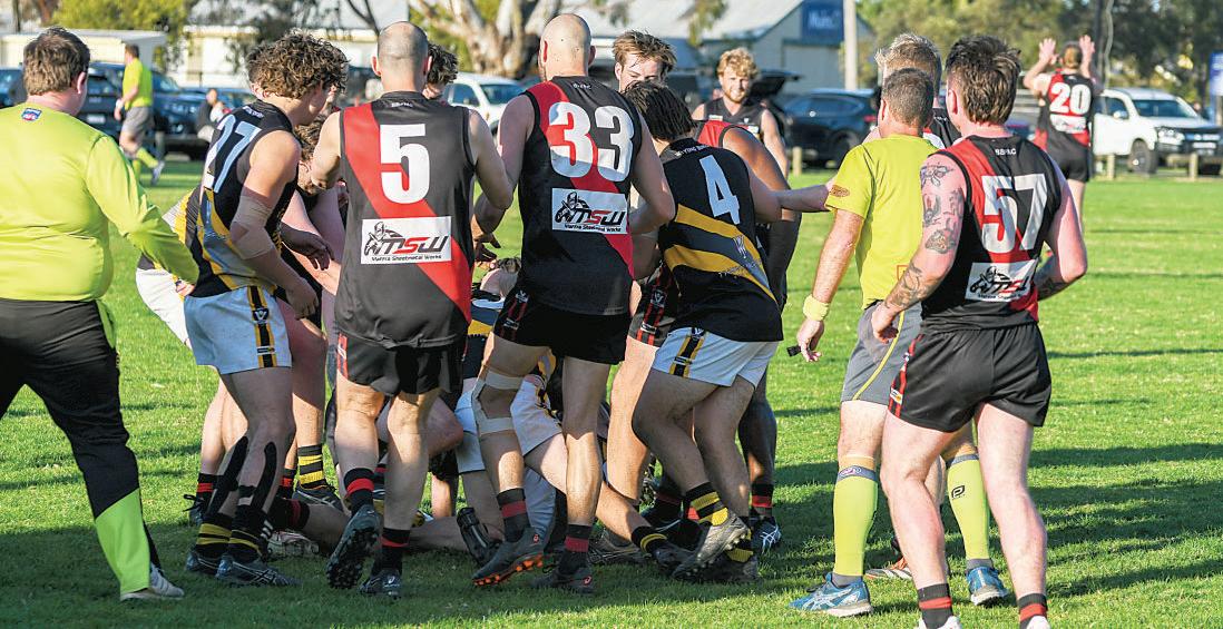It ended the lead the Tigers held for the better partofthe match. But anything can happeninthe final five minutes, and there were moments which kept supporters on the edge of their seats, like a free kick for high contact just outside Wy Yung’s forward 50. There was no conversion, and the rest of the game played out in the middle of the ground on the Henry St sideline. With time tickingdown, supporters were no longeronthe edge of their seats, but standing and beginningtoencroach on theboundary line. Play paused when Paddy Mack sufferedaspliteyebrow, the blood rule ending his time on the field.