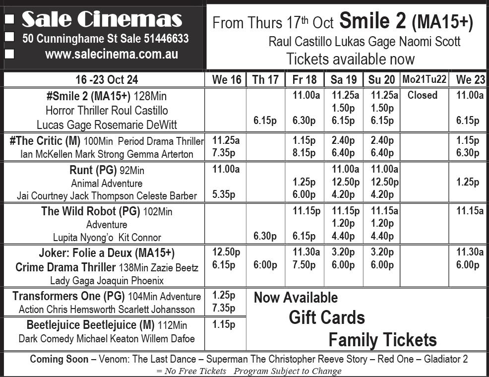On Saturday and Sunday, October 26 and 27, all Bairnsdale trains will be replaced by coaches for the entire journey.