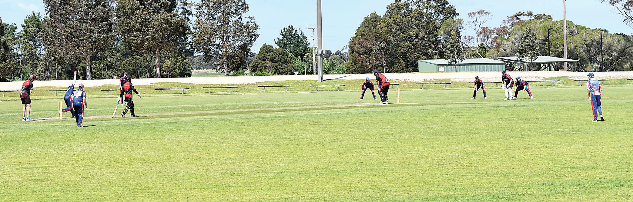 whose chase finished 102 runs short for Stratford’s score. TheSaintsstruggled to get going. Steve Noble providedsolid batting until hisdismissal for 19, and when Adrian Burgiel was stumped of Ethan Albrecht’s bowling, the visitors were 4-41. Madupa Fernando was unbeaten on 42, Jonathon Outhartscored27and Bolton 25 as BoisdaleBriagolong made 7-150 fromits 40 overs. Rietschel and NoahBennett each claimed two wickets for the Redbacks, who find themselves on top of the ladder. No result at Stephenson MAFFRA hadthe edgeofLongford before rain ended proceedings at Stephenson Park. Afterrestricting the Lizards to 7-102, Maffra was 2-58 when play was abandonedinthe 18th over, just short of the minimum number required to constitute amatch.