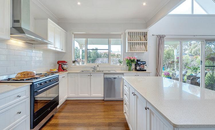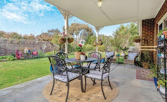 •The modern kitchen overlooks the dining area and includes astainless steeloven and cooktop &adishwasher.Magnificent Spring Garden with maturetrees &vegie gardens.