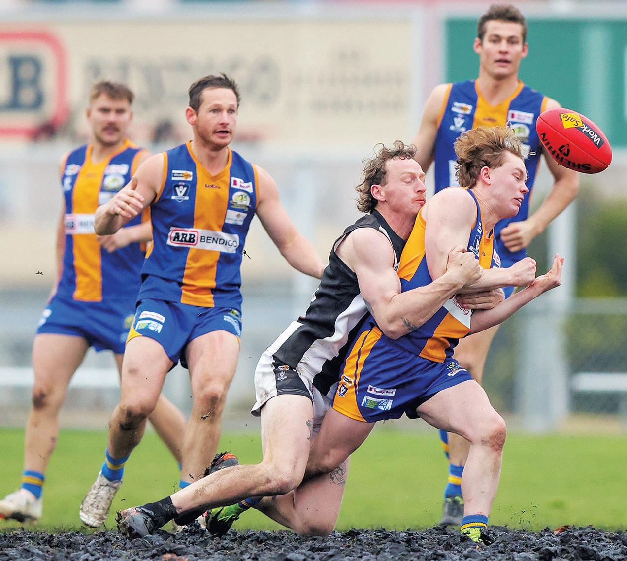 On thenetball court in AGrade matches, Newstead 65 had awin overCampbells Creek34. Best forthe Steaderswas Brianna Jury.Best forCreek wasPaige Langley. Dunolly and Harcourt drew 39 apieceinanail biter.Best forthe Lions wasJordan Bagley. Avoca 63 defeated Trentham 33. Best forTrentham wasSophie Elderfield. Maldon 13 lost to NatteBealiba 95. Best forthe Donnerswas AliceMcManus. Maryborough Giants 61 defeated Lexton 47. Navarre41 accountedfor Carisbrook. Talbot had the bye. This weekend