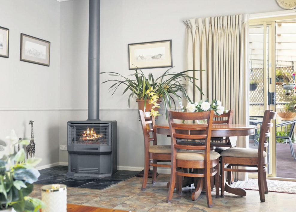 •Wood-firecombustion heater that projects warmth the fulllength of the home