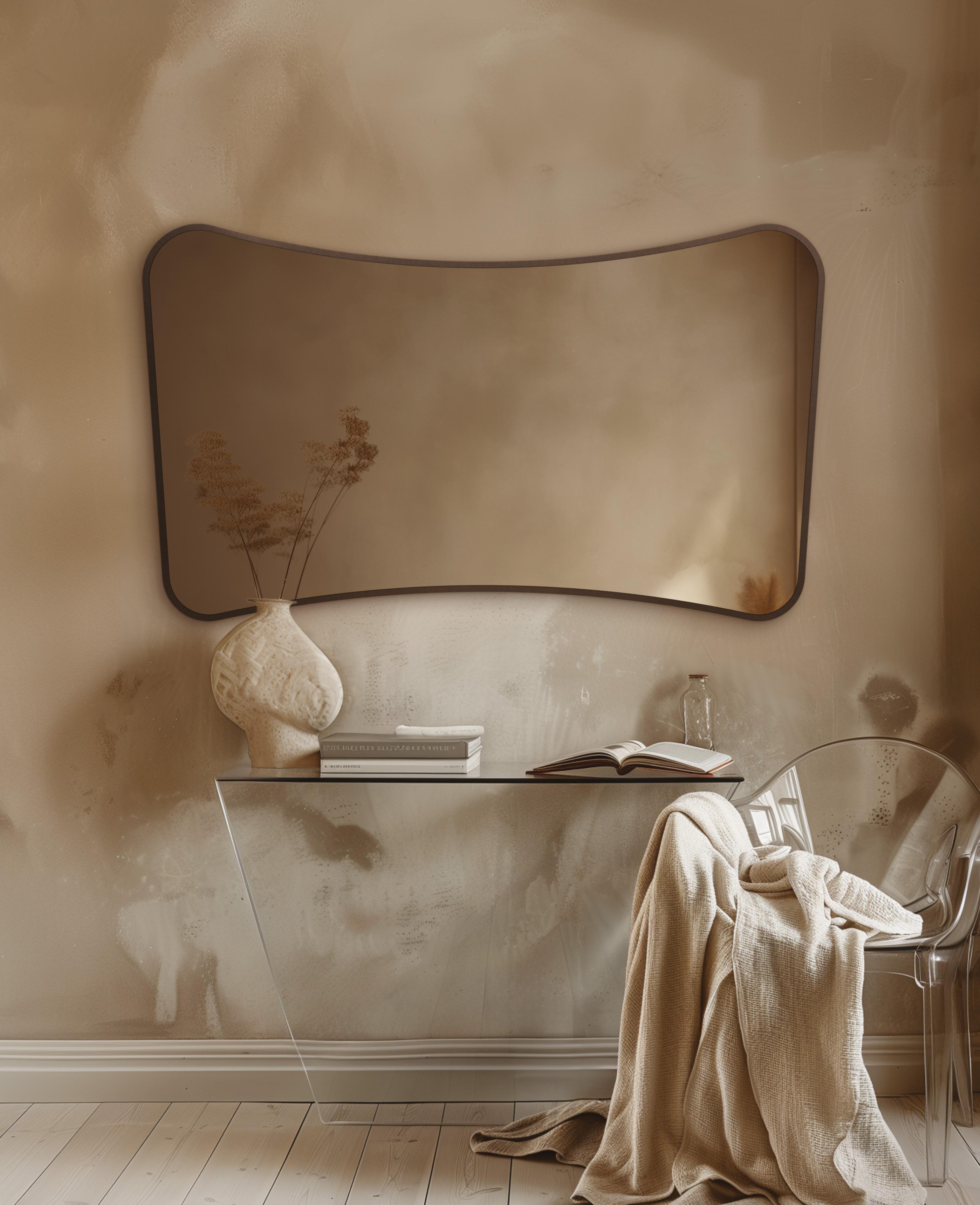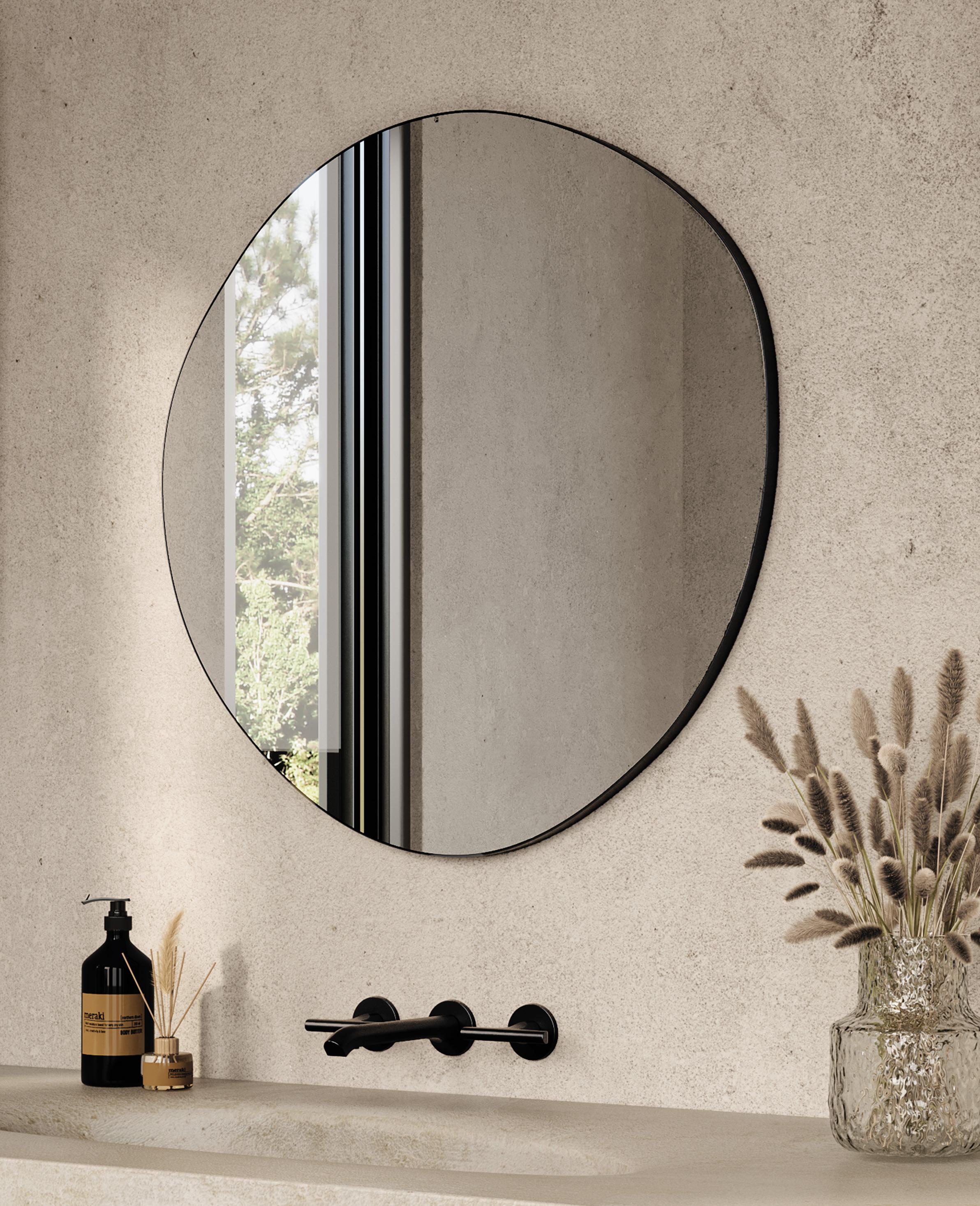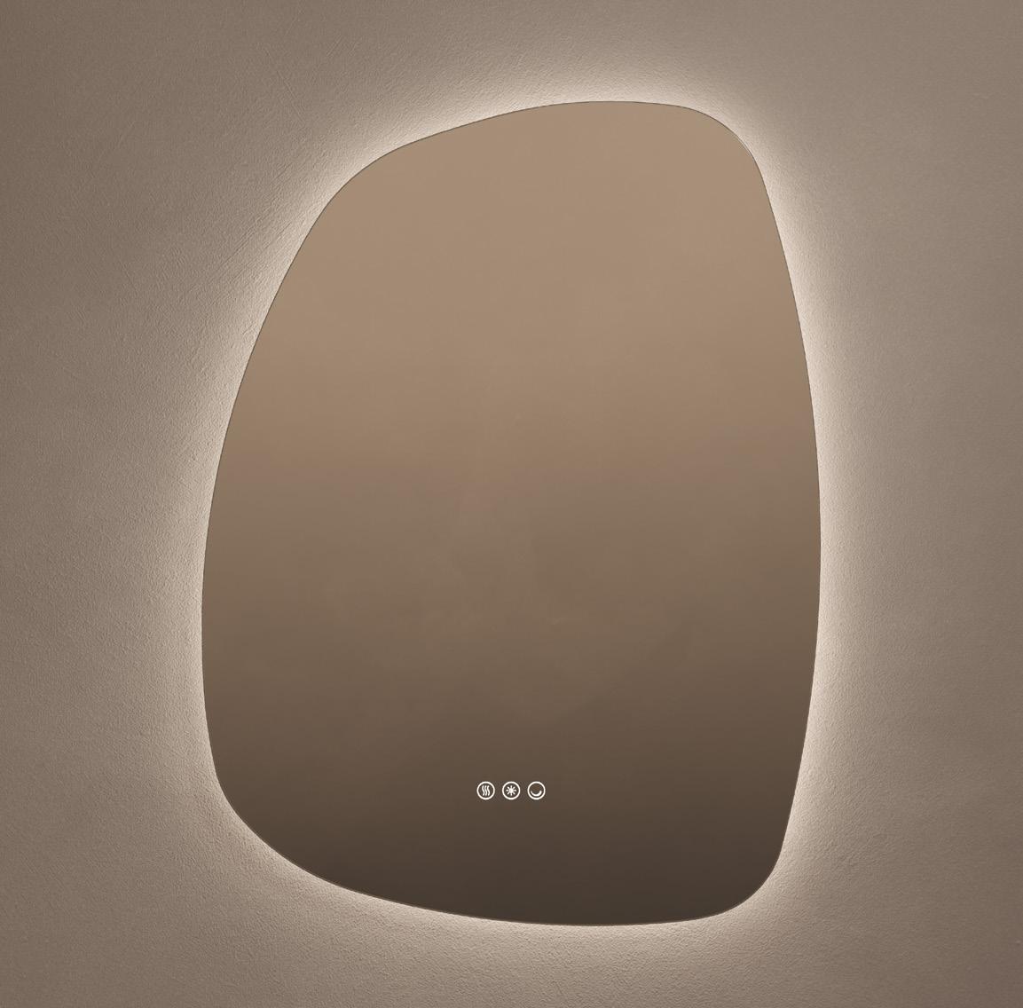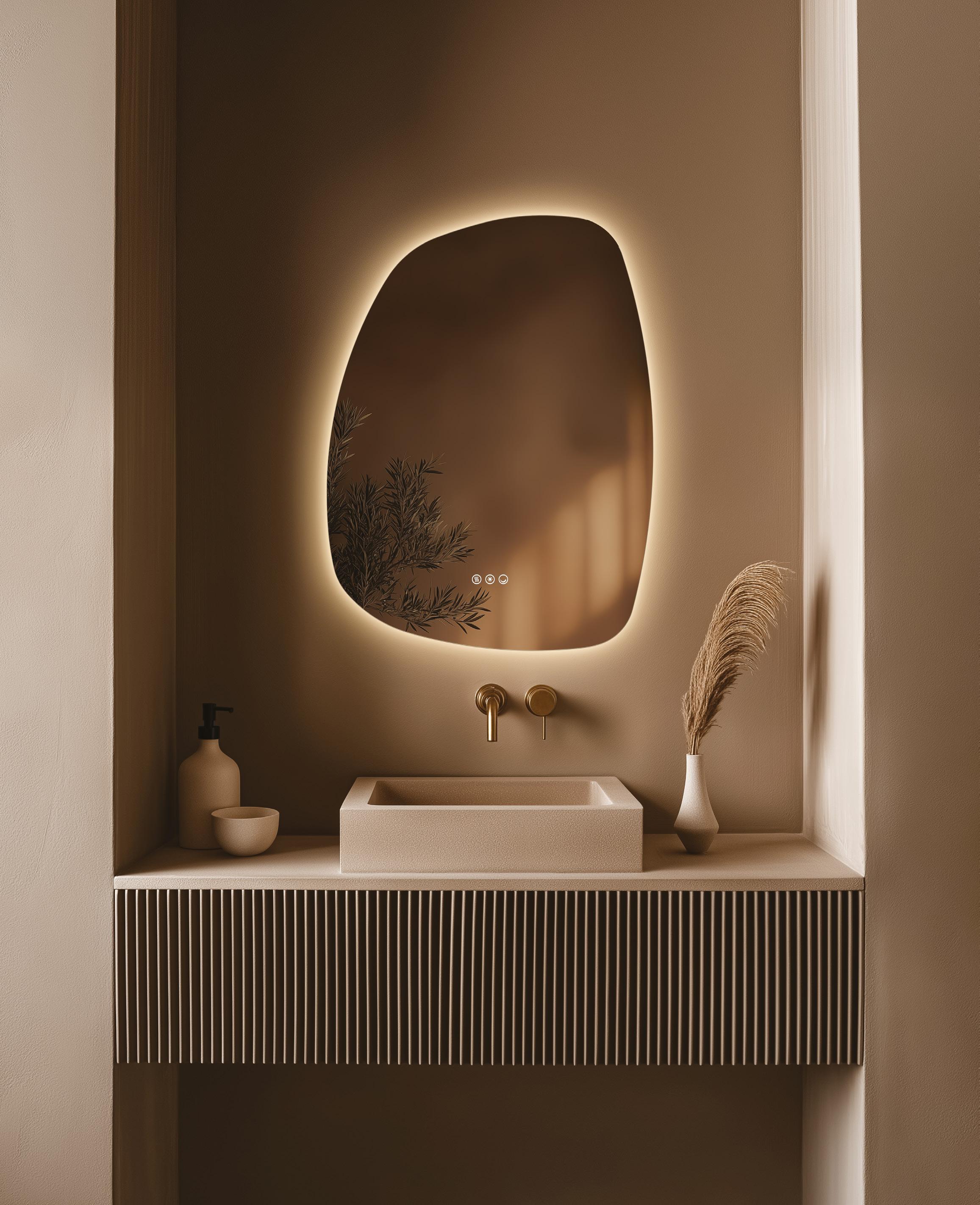 Bask in the captivating radiance of the Claris Organic mirror. This beautifully contoured piece combines contemporary refinement with advanced function, featuring dotless LED lighting that eliminates unsightly dots on the edges or reflections on the wall, providing a smooth, continuous illumination.