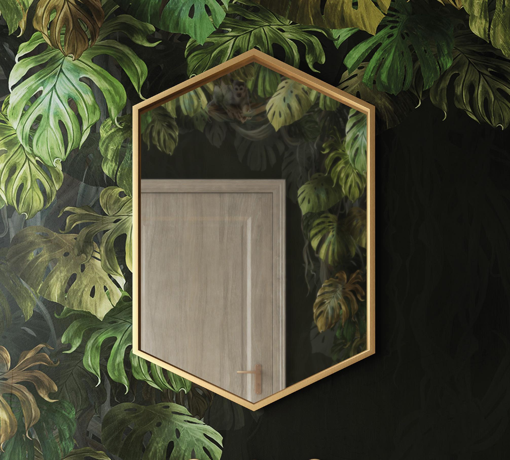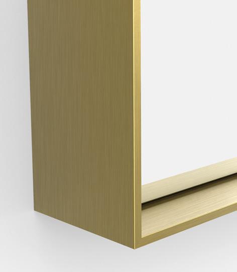 Experience the mesmerising magic of the Luxor mirror. Its matte black frame wraps elegantly around a brushed brass interior, creating a striking contrast that draws the eye. A subtle LED lighting strip adds depth, as if the glass is floating within its luminous frame.