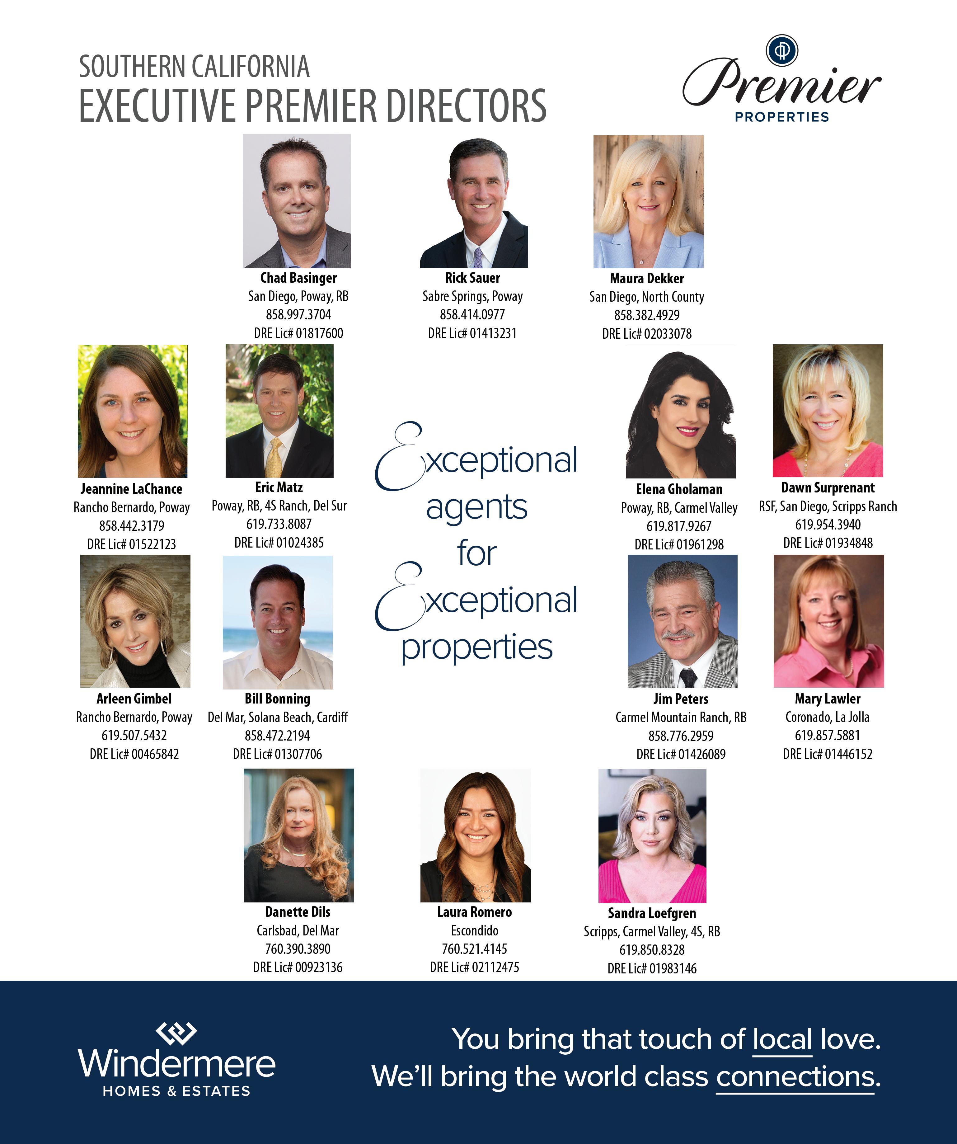 ©2022 Berkshire Hathaway HomeServices California Properties (BHHSCP) is a member of the franchise system of BHH Affiliates LLC. BHH Affiliates LLC and BHHSCP do not guarantee accuracy of all data including measurements, conditions, and features of property. Information is obtained from various sources and will not be verified by broker or MLS. Sellers will entertain and respond to all offers with this range. Buyer is advised to independently verify the accuracy of that information Best North County Realtor for 2022 - Modern Luxury America’s Best Real Estate Professionals – WSJ Top Real Estate Producers – San Diego Business Journal Ranked Top Half of 1% Worldwide – Berkshire Hathaway HomeServices REPRESENTING SAN DIEGO’S FINEST HOMES TIM VAN DAMM & ASSOCIATES Thinking of Selling or Buying Your Home? Contact me, I would be honored to represent you! CALL TIM 858.663.0911 TIM@TIMVANDAMM.COM TIMVANDAMM.COM DRE #02011614